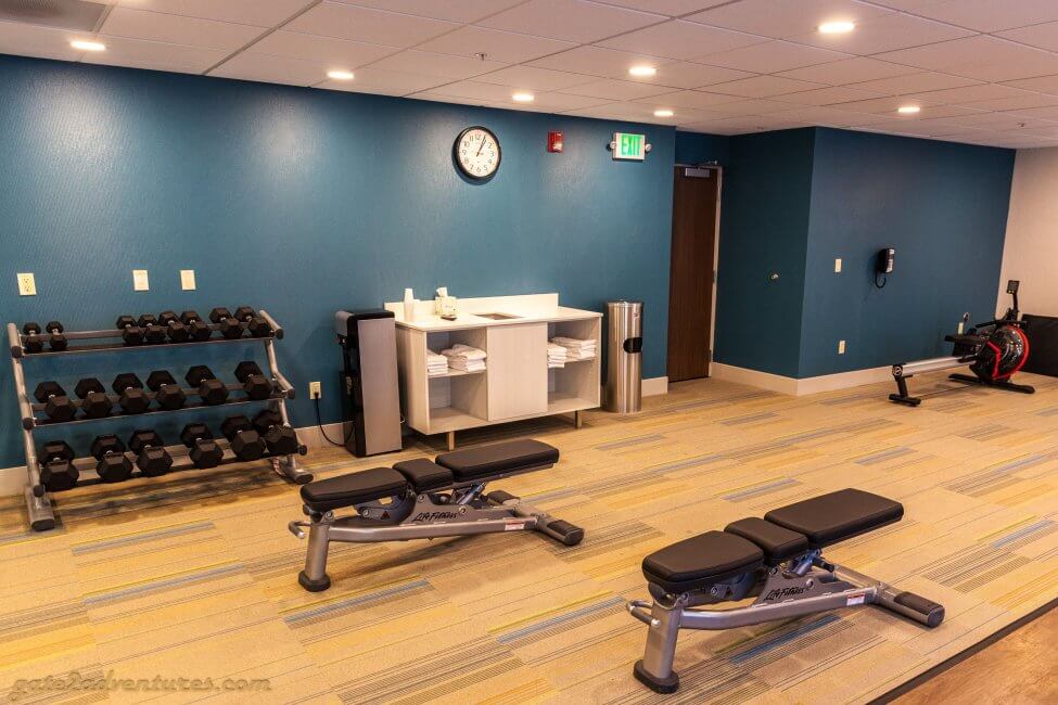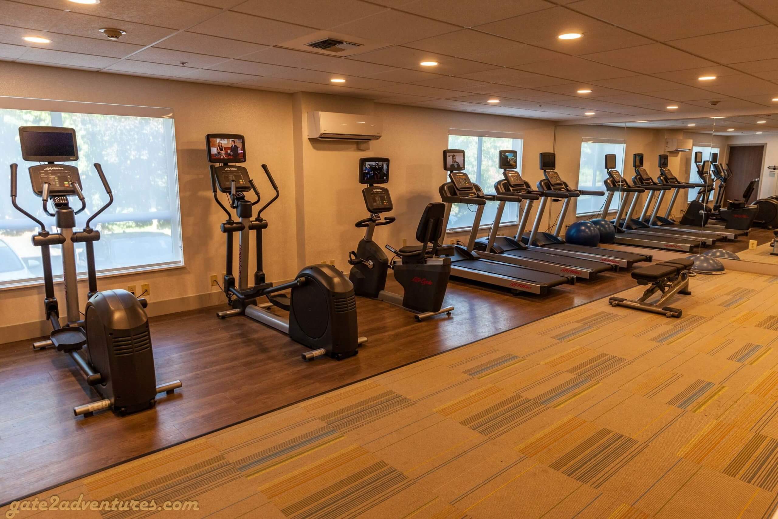On the mezzanine level, you can find a set of restrooms, besides the one on the lobby level, and the fitness center. The fitness center is well-sized for the property.