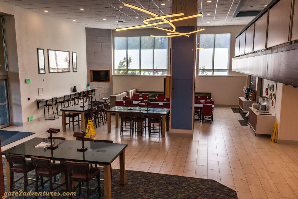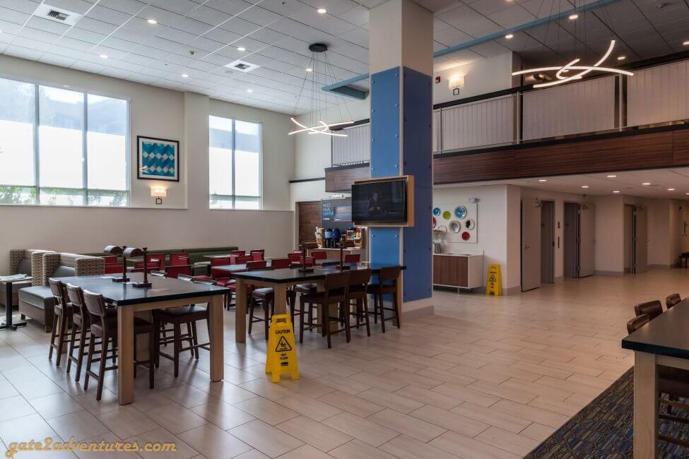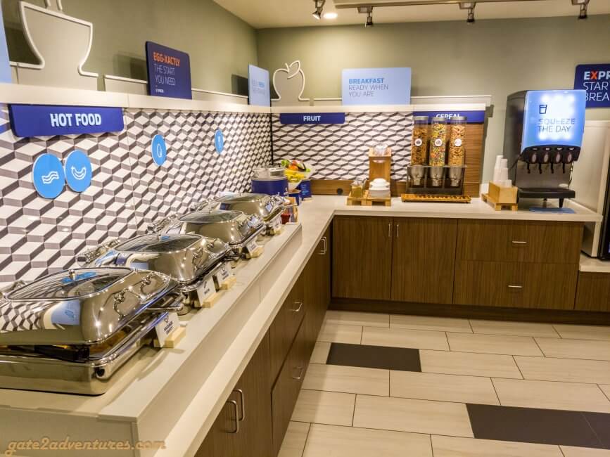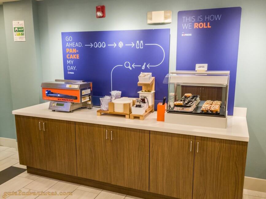 The hotel offers complimentary breakfast to its guests. Surprisingly, it already starts at 5 a.m. every day of the week. This is awesome as most other hotels usually start breakfast at 6 a.m. or 6:30 a.m. The breakfast buffet is what you are used to from Holiday Inn Express, including the “famous” pancake maker. The staff keeps the breakfast buffet well stocked and clean.