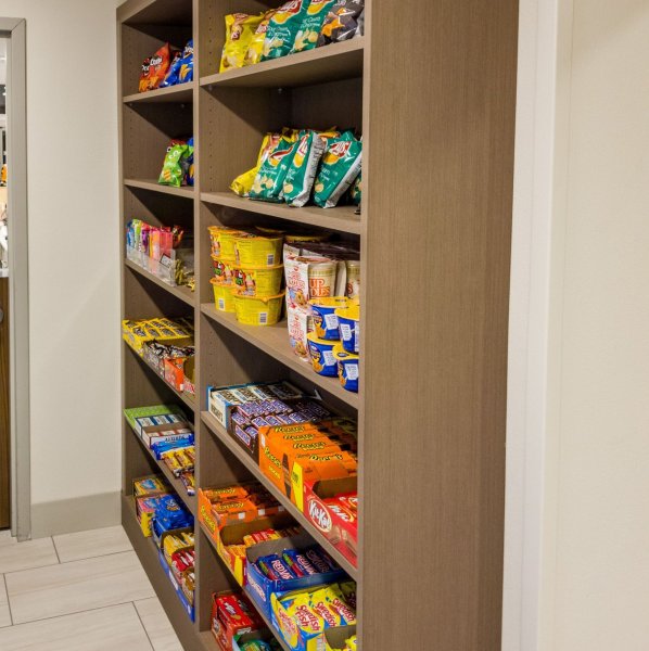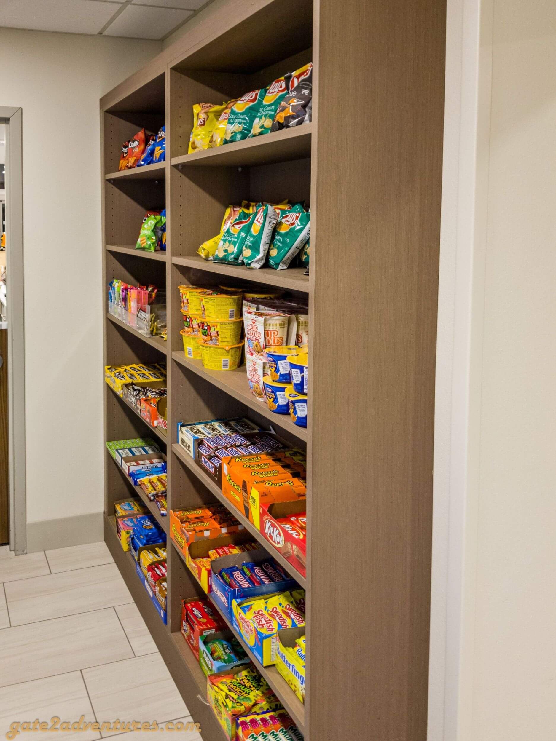 Next to the front desk is a small market where you can buy small snacks and beverages. There are also multiple vending machines throughout the hotel. Another surprise, the vending machines accept credit cards.
