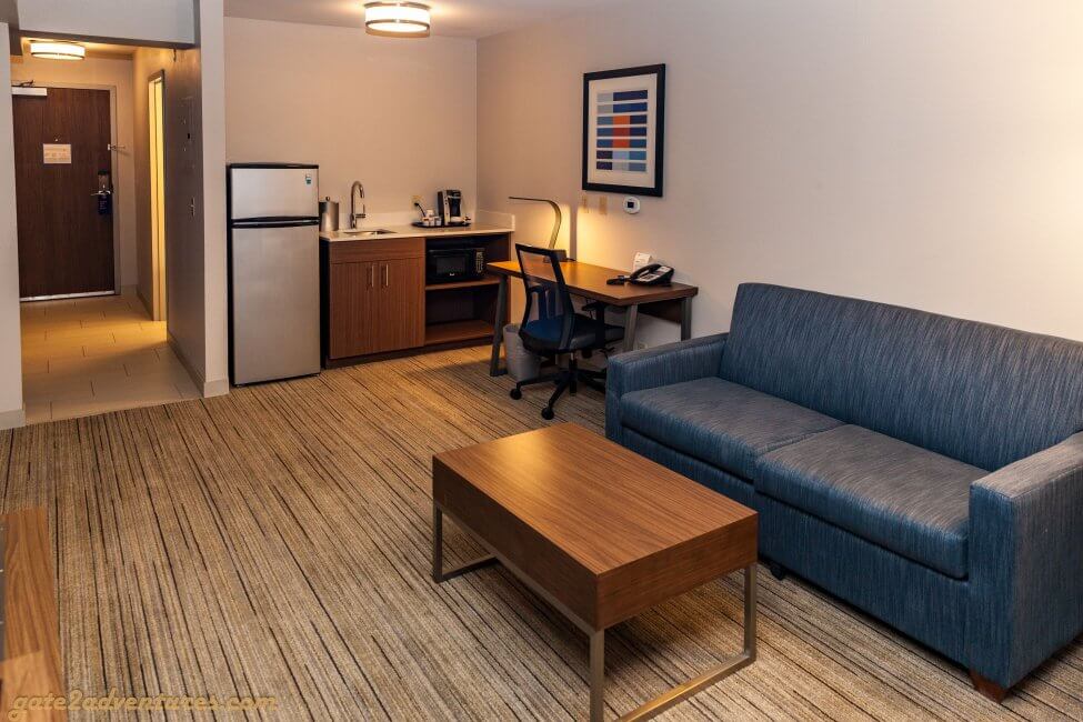 The Holiday Inn Express & Suites Seattle-Sea-Tac Airport is a great choice to stay for an overlay or even while visiting Seattle itself. A Light Link Rail Station (Angel Lake Station) is within walking distance of the hotel. Just one block south of the hotel. The hotel would even drive you there with their shuttle or you can take the shuttle to the airport and hop on a train there to Downtown Seattle. A great perk here is the free parking as long as you are staying at the hotel. Usually, hotels around airports charge outrageous fees for parking, but that’s not the case at many hotels around SeaTac. The staff is friendly and nice. Breakfast was great, even though it’s just your usual Holiday Inn Express breakfast buffet. The hotel just recently got renovated, which is another big plus for this property.