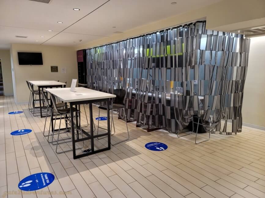 Due to the ongoing Covid-19 pandemic, breakfast service was limited. However, they had one of the best breakfast offerings overall. Instead of the continental breakfast buffet which gets usually offered. They downsized it and you can get only single-packed items for the time being. You can find small cereal boxes, pastries, and even breakfast sandwiches. Everything individually packed or wrapped. In case you crave waffles, a staff member can make them for you. In the little fridge under the left side of the breakfast table, you find juices and different flavors of yogurt as well as milk for your cereal.