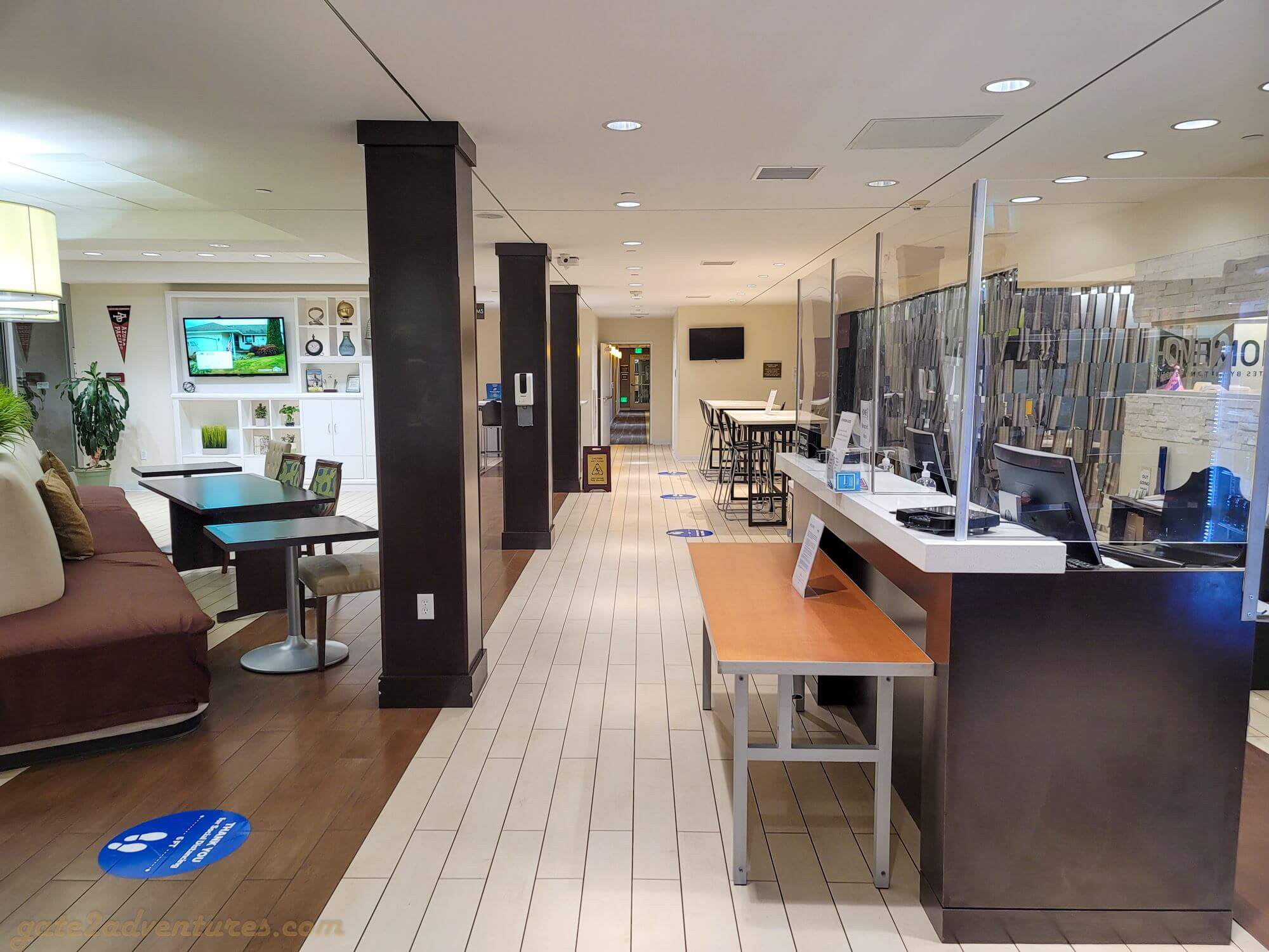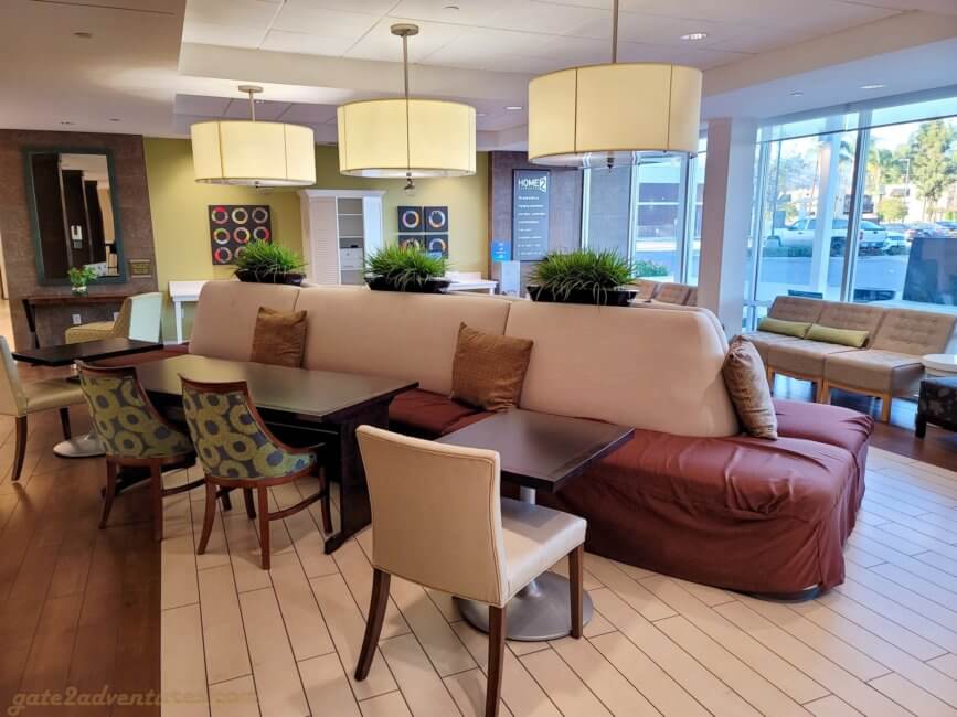 The Home2 Suites by Hilton Azusa has an inviting lobby area to hang out and relax. It’s a bright and open space with plenty of seating options. The lobby features also a small “business center”, a desk with two workstations to surf the internet or for a print job.