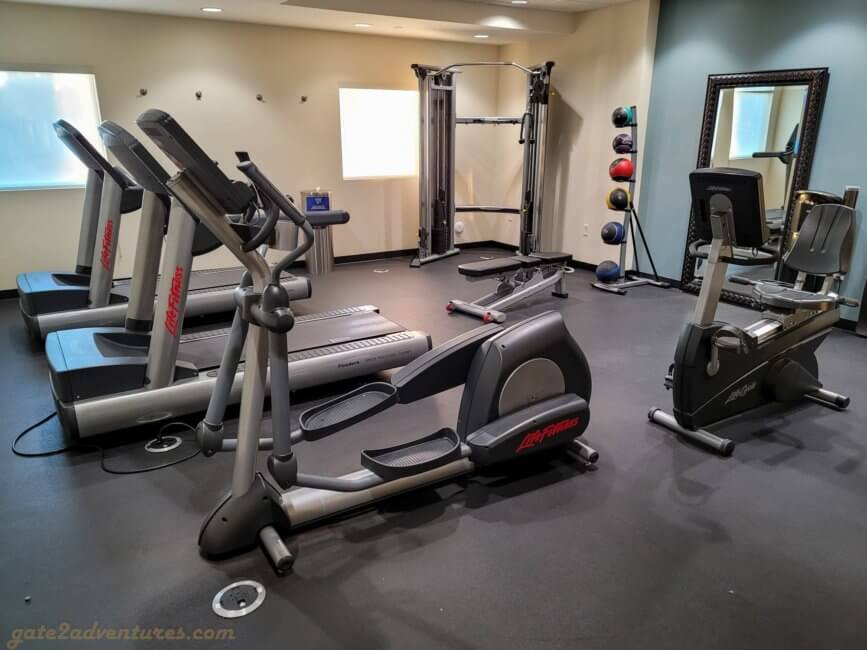 Close to the elevator is the entrance to the fitness center. It is a typical fitness center with all the equipment you might need for a good workout. You need to use your room key to gain access to the fitness center. The same door to the fitness center also gets you to the adjoined guest laundry facility.