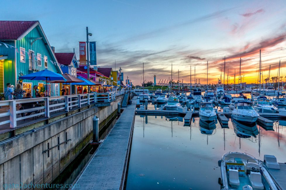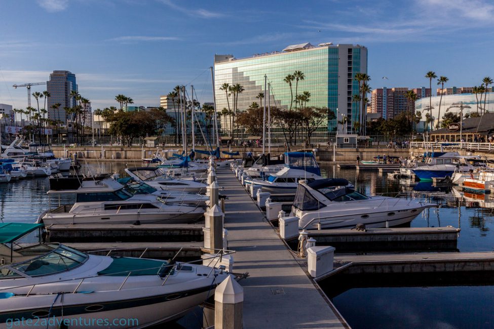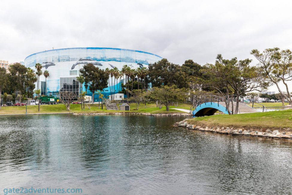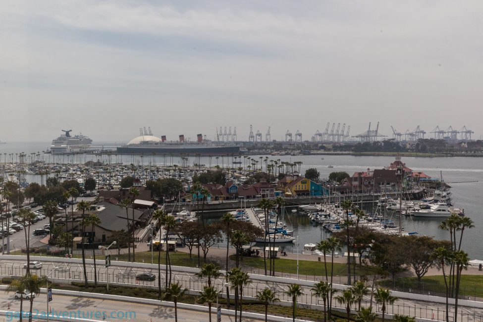 Just outside of the pool area is a fountain in the lagoon and you can rent boats nearby to paddle around the lagoon. It’s a very small lagoon and it’s just another fun activity. Besides that, you can access the pedestrian bridge over to the Shoreline Village. It’s a great place for a walk and even for dining. Even tho the hotel has a restaurant, you are probably better off by visiting one of the many dining options along the shoreline. Besides dining, you can take harbor cruises here, rent boats jetskis or bikes, walk along the shoreline or over to the harbor and the Queen Mary. During the summertime, they have a water taxi going in between the Shoreline Village and the Queen Mary. Near the Shoreline Village is the Aquarium of the Pacific which is quite famous in this area as well.