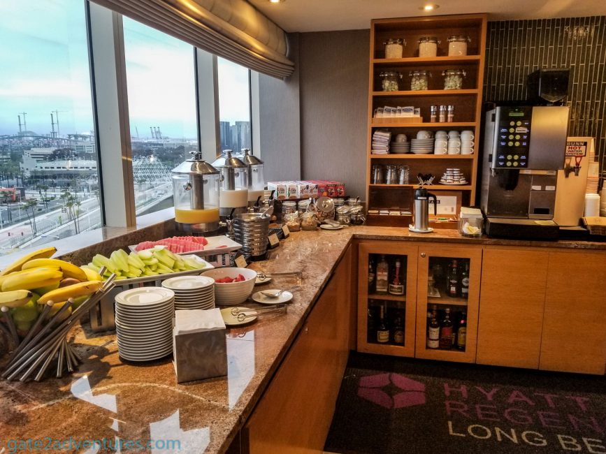 During the day you can come here to grab a coffee or a soda. The evening spread is compared to other Hyatts on the lower end. They only have a few snacks out and missing real food bites. But you probably out anyway at one of the many dining places around the hotel.
