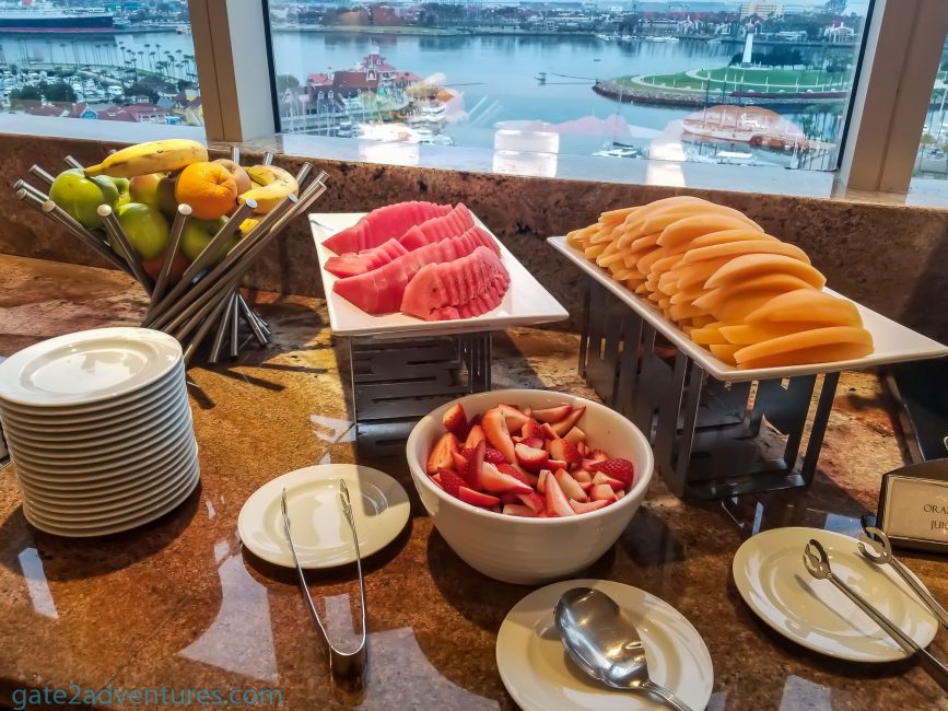 The breakfast buffet is ok. It’s not a very big selection but everything you would need like eggs, cereals, fruits, bread, juices, tea, and coffee. The Regency Club has a flatscreen TV on the opposing end of the room from the buffet. From the windows, I had the same view as from my room, just a level higher. Inside the club are a few Mac workstations and a printer.