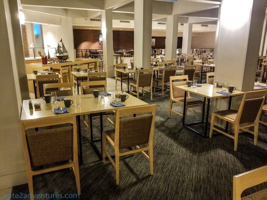 The hotel has two dining places. The Tides restaurant serves a rich breakfast buffet and lunch. While you can enjoy coffee and smaller bites in the lounge on the lobby level. As I mentioned earlier, there are so many dining options around the hotel. You can find pretty much every chain restaurant you can think of from fast food to fancy. For example, there is a Bubba Gump Shrimp Company, Hooters, Chili’s, Outback Steakhouse, Gladstones, and many more. There are also some food places in the Pike Outlet Mall and Amusement Park. A place I can recommend is Parker’s Lighthouse, a restaurant right on the waterfront with great views.