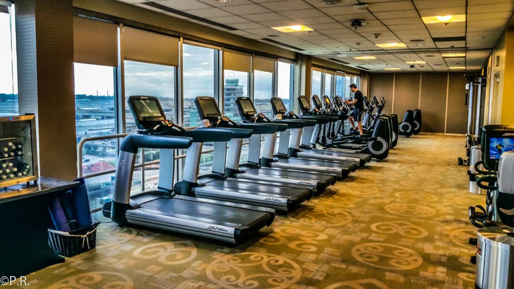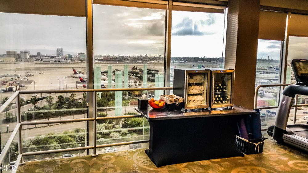 The fitness center is on the top floor, press “PH” inside the elevator. From there you have a great view of the airport and airfields. You can see the LAX Pylons illuminated at night. The fitness center is very well equipped and I am sure it’s good enough for a thorough workout.