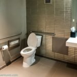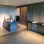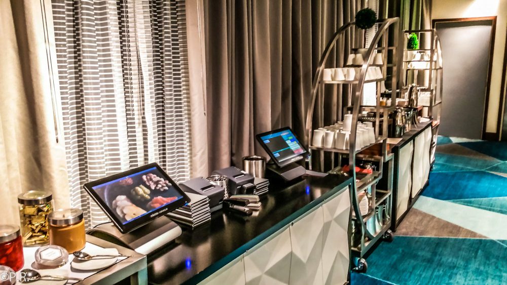 The lounge space is pretty big for that hotel and has lots of comfortable seating. Most of the seating places are focused on being dining tables. Right when you enter you have the staff counter. To my surprise, there is also a unisex restroom. This is the second place I have seen a restroom in the Hyatt lounges, the only other one I know is the Grand Hyatt in Hong Kong. Behind the counter is a meeting room separated by two sliding glass doors.