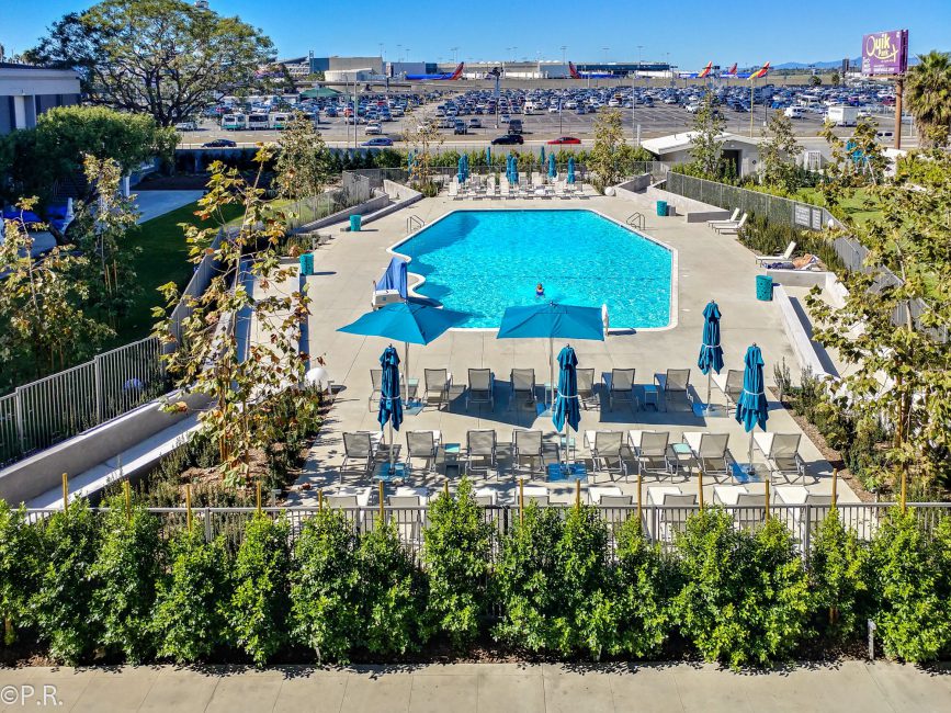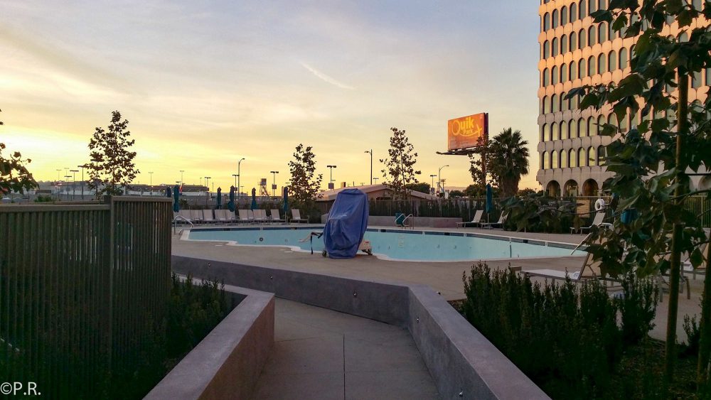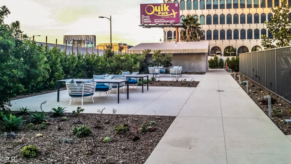 Outside of the hotel and next to the pool is another area where you can sit down and relax. Here the engines of the planes taking off and landing at LAX. This area seems to be not very frequented by guests and is a good spot to get some me-time.