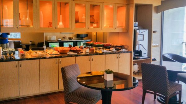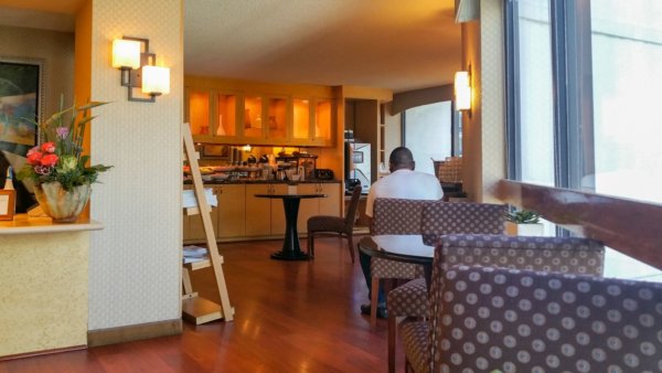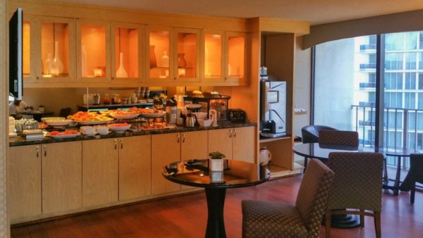One perk of being a Diamond Member with Hyatt Goldpassport is the access to the Regency Club. The club is located on the 23rd floor in this property but got closed 5 days after my arrival. The reason for the closure is remodeling and getting a bigger club room and also moving it to the top floor of the hotel. The indeed needed a bigger space but the execution could have been better. Since there was actually another space assigned to be the new Regency Club two levels higher, why didn’t they kept this one open until the new one is ready and have a smooth transit? They probably had their reasons. Everyone with access to the Regency Club got a little note from the management, that they will receive free breakfast at the Riverwalk Cafe, two free bottles of water every day and some bonus points.