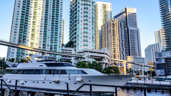 Yacht passing through the Miami River