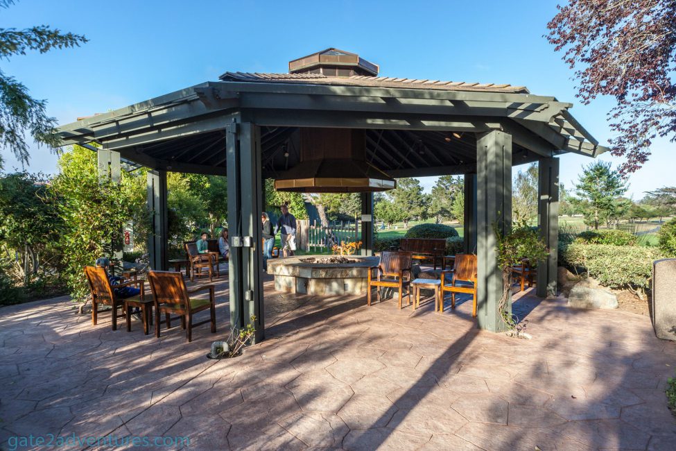 On the way from the Spyglass Pool to the backside of the lobby, you can pass through the Gazebo. It has a fire pit which gets turned on every night and good views of the golf course.