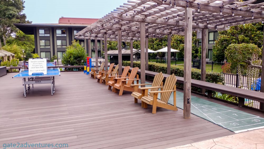 The hotel has quite a lot of public places. There is a beautiful lobby with the amazing Fireplace Lounge. More about this one later. The Del Monte Golf Course is behind the lobby and you have straight access to it. To the right of the lobby, building is the Spyglass Pool and Spyglass Gaming Area. The games include ping pong tables, connect four, bean bag toss, and board games for lobby or in-room use. The usage of all this is as well included in the resort fee.