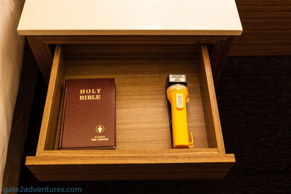 I grabbed my room keys and the bottle of water I got offered during check-in and headed back outside to my car. The provided map to find my building was helpful but because of the darkness, it made it still a bit hard. It helped me more to follow the posted signs for the individual buildings rather than using the map. My room was located in Building 15 which is located off to the left of Old Golfcourse Rd. Building 15 doesn’t have an elevator only stairs. The closest elevator to use is in Building 14 and this one is connected on every level to Building 15.
