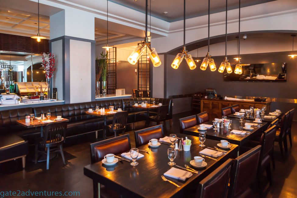 Before you enter the actual breakfast area with all the seating you will notice the bar on the left side. They feature drinks and some small bites starting around 11 a.m. and are open until midnight. See details below.