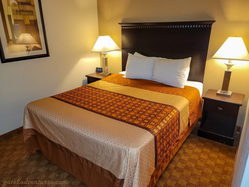 The outside of the SureStay hotel made a very well-maintained impression. Also, the lobby looked nice and clean but a little antique. This is kinda the charm of Best Western hotels and I don’t mind at all as long everything is clean. There was plenty of seating in the lobby but other than you would expect, breakfast is in a different room on the other side of the property. Almost across from the front desk is a pretty well-sized business center with four workstations to use. Pretty great setup.