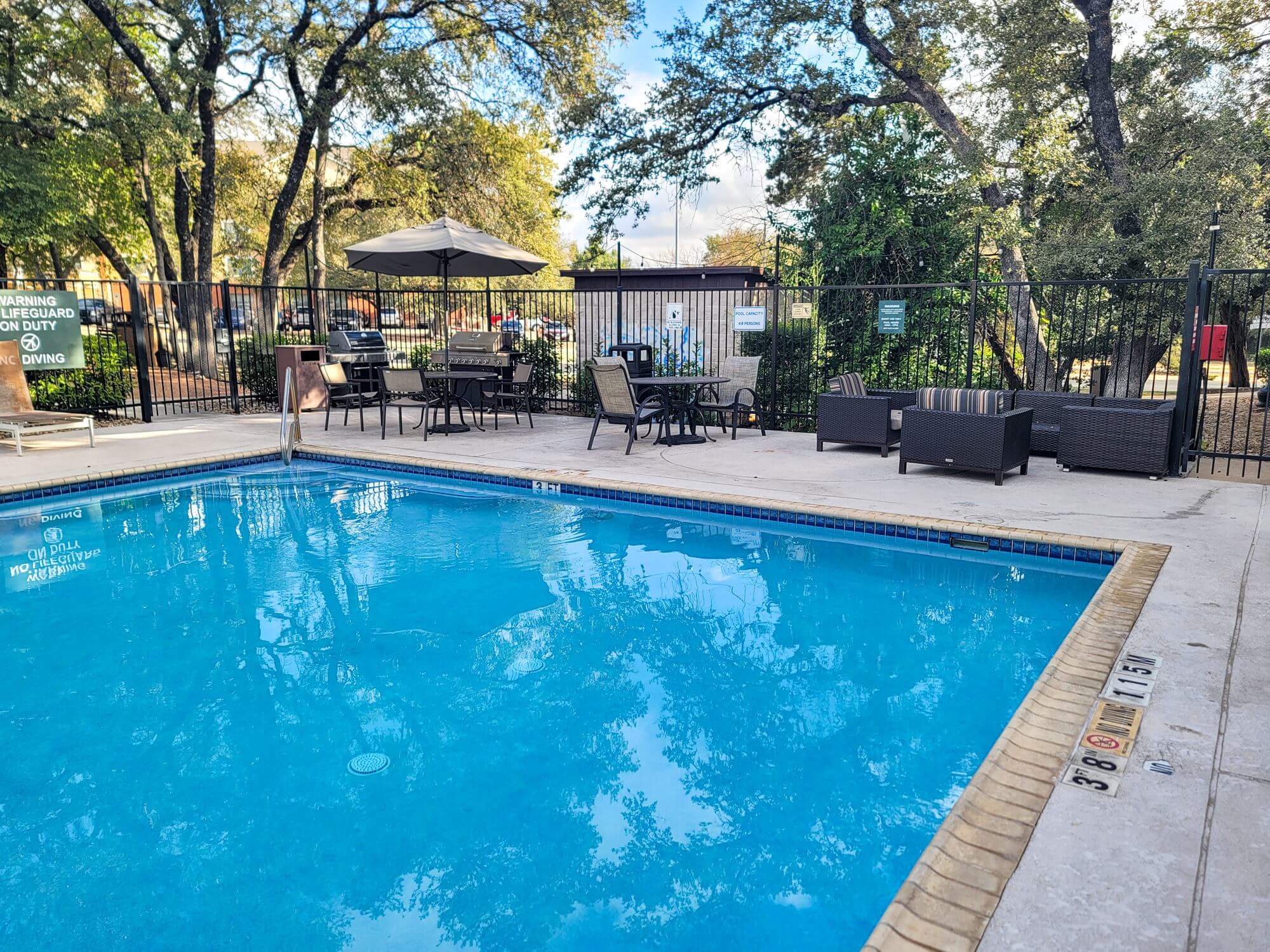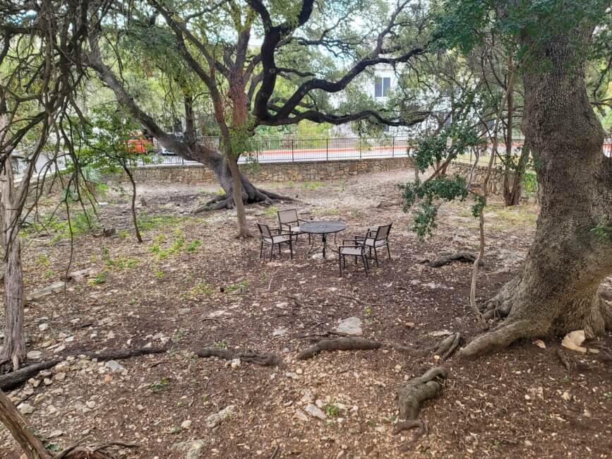 The Hyatt House Austin/Arboretum has a small fenced-in dog park where they can roam around freely. It’s a fenced area in front of Building A. The area also comes with a lot of trees which provides lots of shade in the summer.