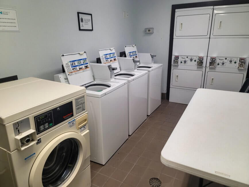 The laundry room is also found in building B. There are a few washer and dryer units in the laundry room. Unfortunately, these are old-school coin-operated machines. If you need change, you can get some at the front desk. It costs $2 each for a washer or dryer.