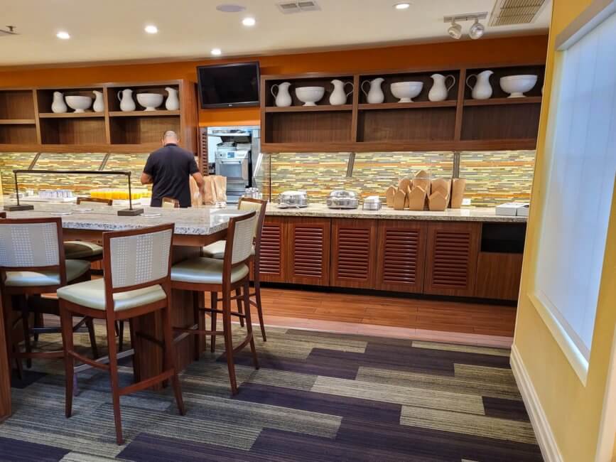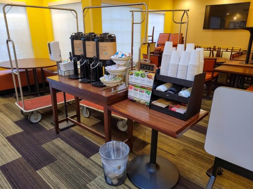 Because the Coronavirus pandemic was in full swing during my stay here, breakfast was limited. However, they offered some of the best breakfast during that time of the pandemic. A staff member was responsible for handing out the food. You were able to get your own mix and match to-go bags. There were even some hot options like scrambled eggs, sausage and bacon. After a few weeks of staying here, there was no more option for bacon and only sausage was offered instead. Besides that, there was some choice of juices, yogurts, fruits, granola bars and more. The weekend service was a little different and only french toast was offered as a hot option. As I basically lived here for six months, the main guy working the breakfast buffet, already knew what I want, as it was the same every morning. That was a nice touch. The other two days, a different person was working the buffet and they changed every few weeks. The coffee was a self-service set up in the lobby area during breakfast hours.