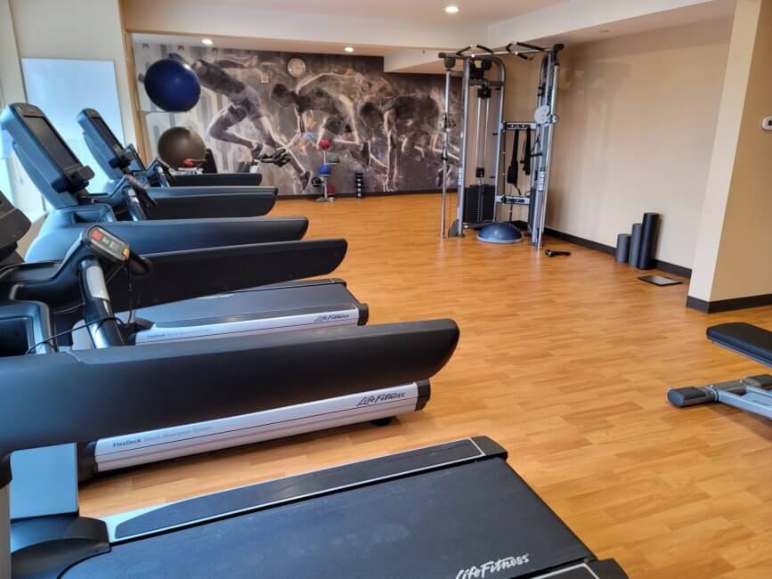 A fitness center is located on the third floor. Once you get off the elevator follow the signs and it will be one of your first doors. At the moment you have to get a key to access the fitness center which is located at the front desk. This is because they only allow three people simultaneously in the fitness center. It is however open 24 hours a day. There is even a bathroom in the fitness center. Unfortunately, there is no swimming pool at all at this property.