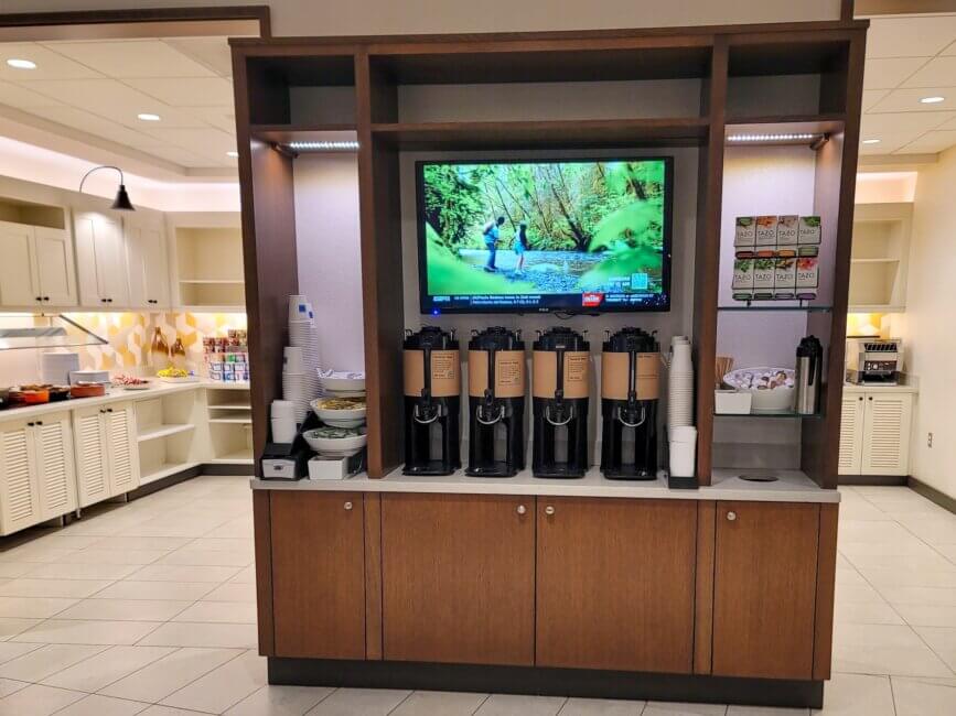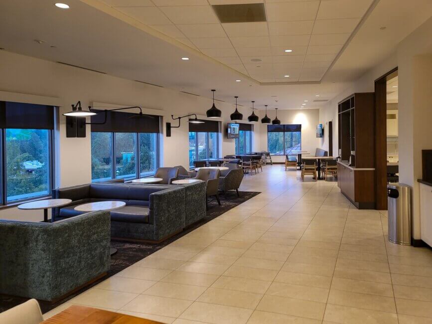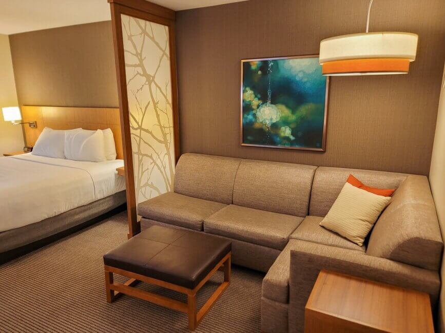 My stay at the Hyatt Place Eugene / Oakway Center was very enjoyable. The hotel is almost “brand new”. It opened in August 2017, according to the front desk agent. I didn’t receive an upgrade to a suite as they were sold out for that room type when I checked the app after I checked in. Staff throughout the hotel were super friendly and always willing to help you if I needed anything. Because it was only a one-night stay, I couldn’t enjoy all the amenities to the fullest as I had to work as well.