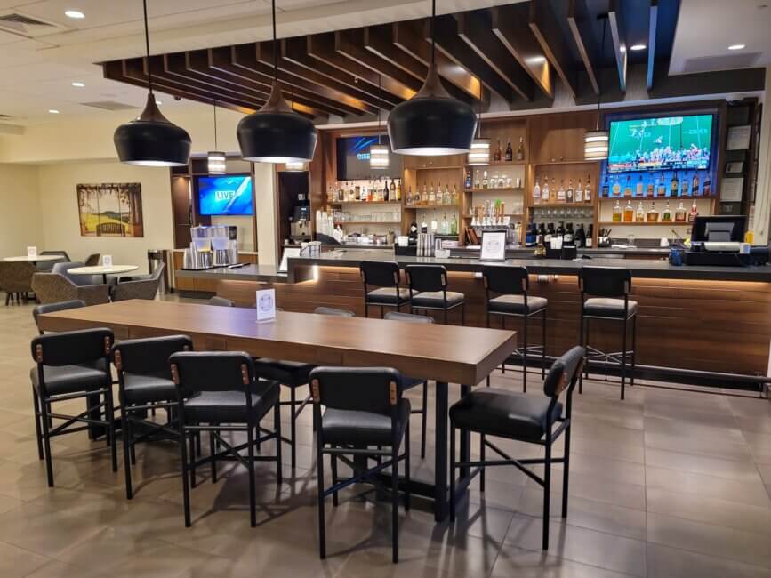 The Sky Bar is located to the left of the front desk. You can sit at the bar counter or at one of the few tables in the bar area. Besides drinks the bar also serves a decent choice of food. After I checked in and settled in my room I came downstairs for a drink and some Mac & Cheese which I enjoyed outside at the Sky Deck.