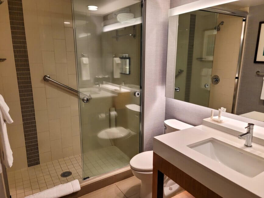This room is located right around the corner from the elevators. I didn’t mind at all and there was not a lot of foot traffic outside my room during my stay either. As you walk into the room you have the bathroom to your right.