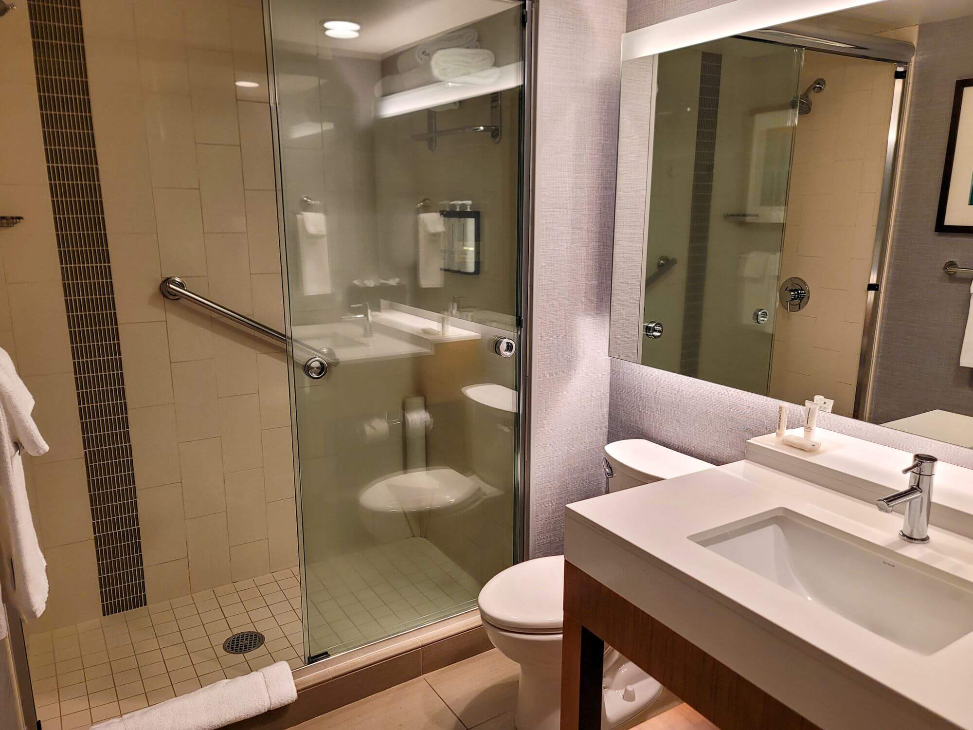 Check-in was otherwise quick and easy. After I got my room keys I took the elevator back downstairs to the ground level and walked up the parking garage ramp to my car and parked up on the fourth floor to have easy access to the hotel elevators as these don’t go down to the second but go down to the first/ground floor which is also the welcome lobby of the hotel.