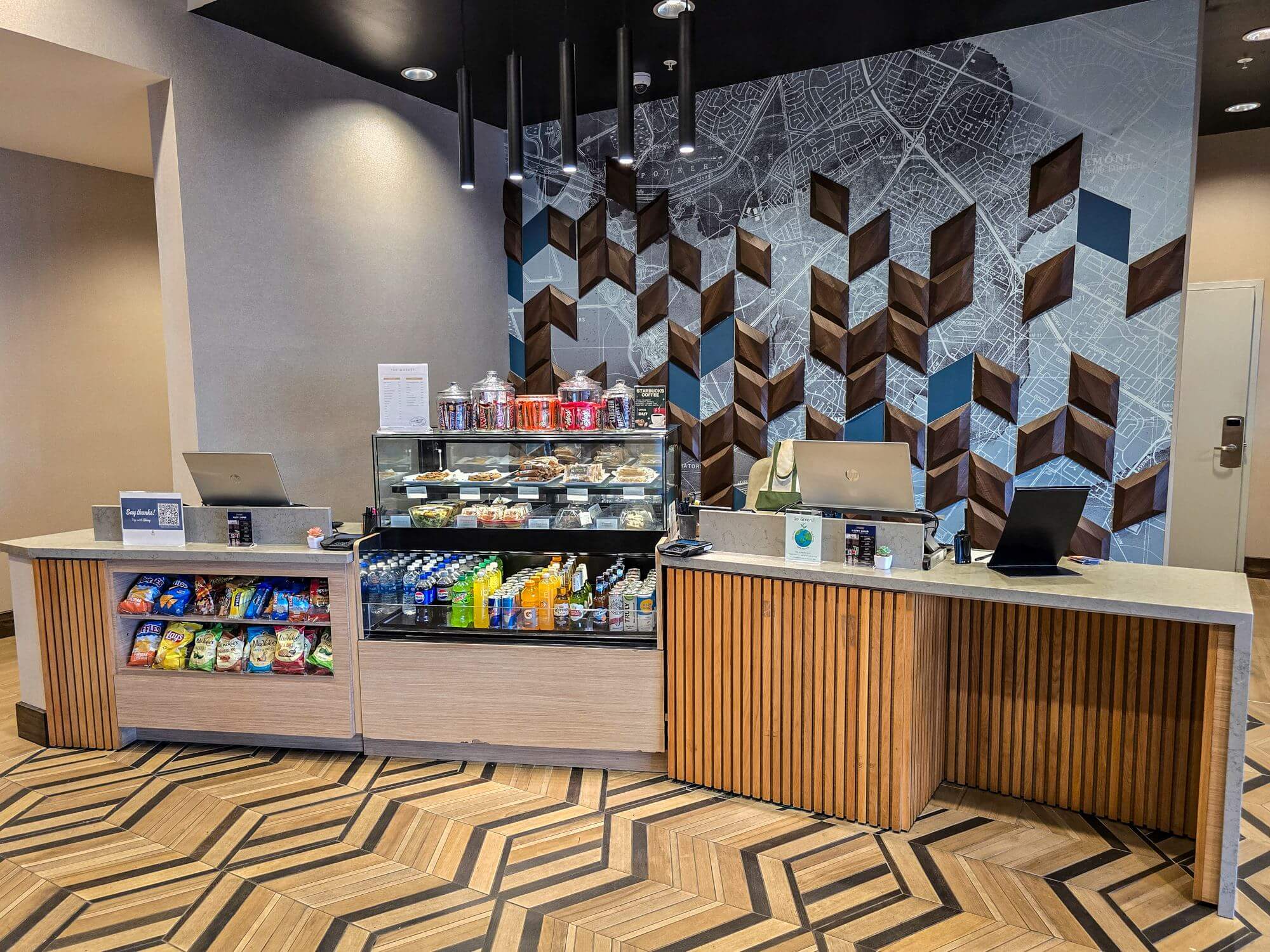 Right at the front desk is a small grab and go market with snacks, sodas, beers and other little things you want to grab for to go.