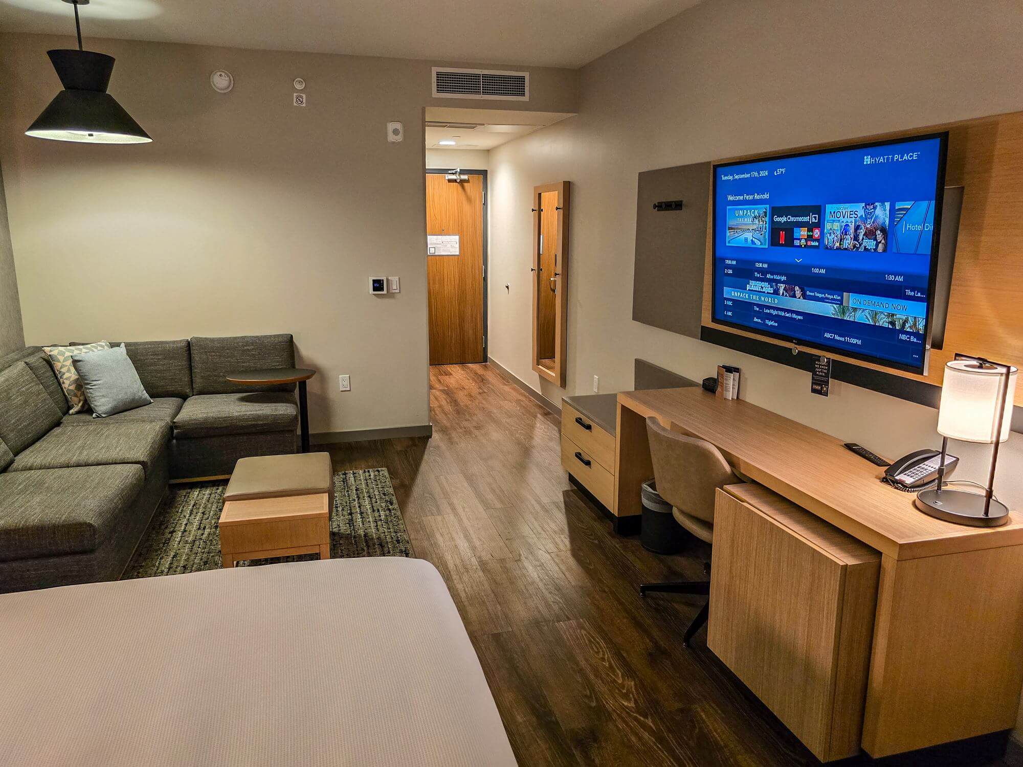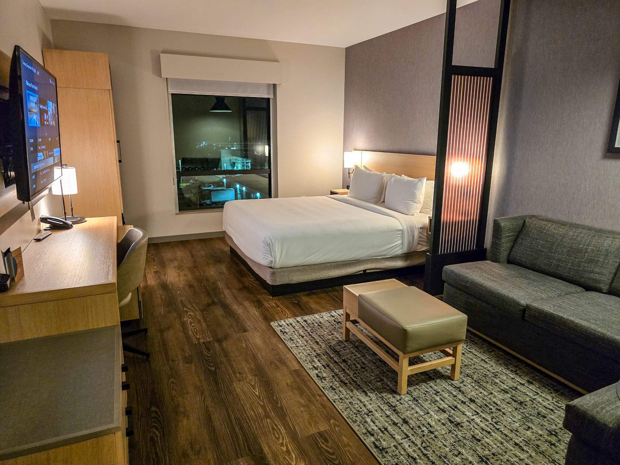 The room is a typical Hyatt Place room. You get a well-sized room with lots of space. The room has hardwood flooring.