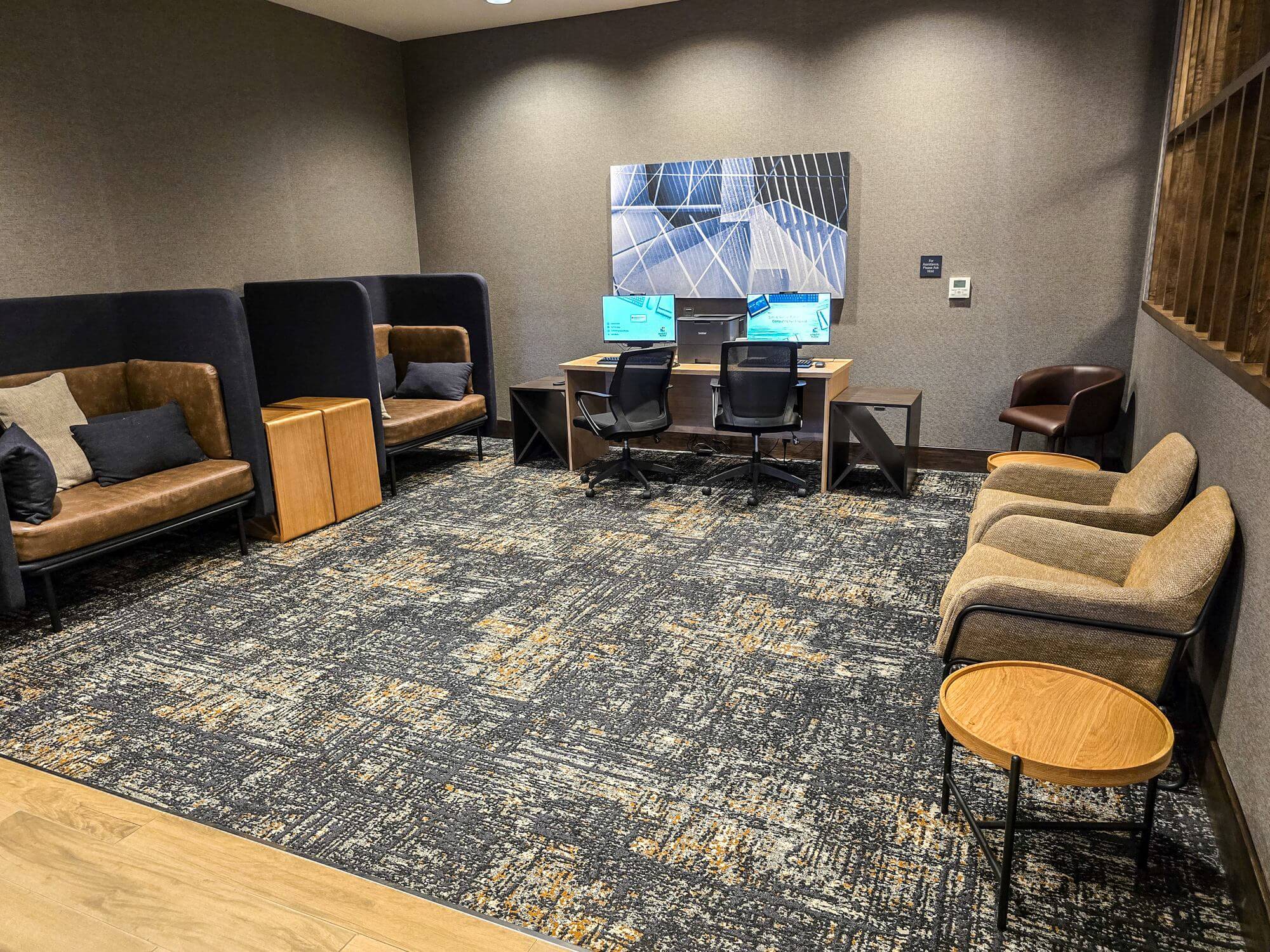 The lobby is mainly made up of the dining area for breakfast and the seating area for the Placery, the on-site restaurant. There is also a business center.