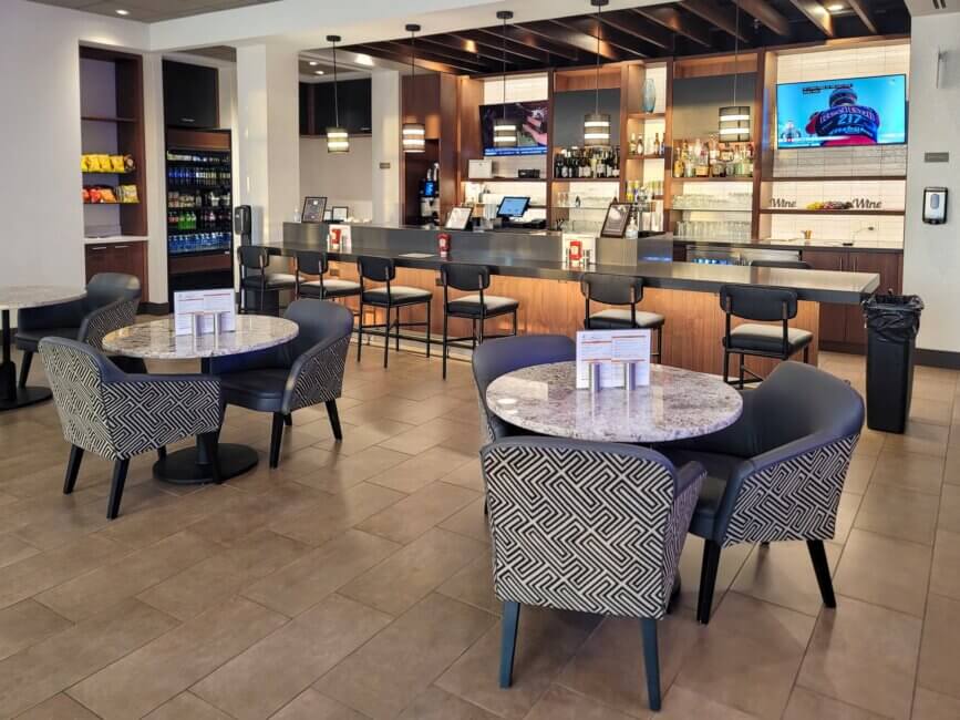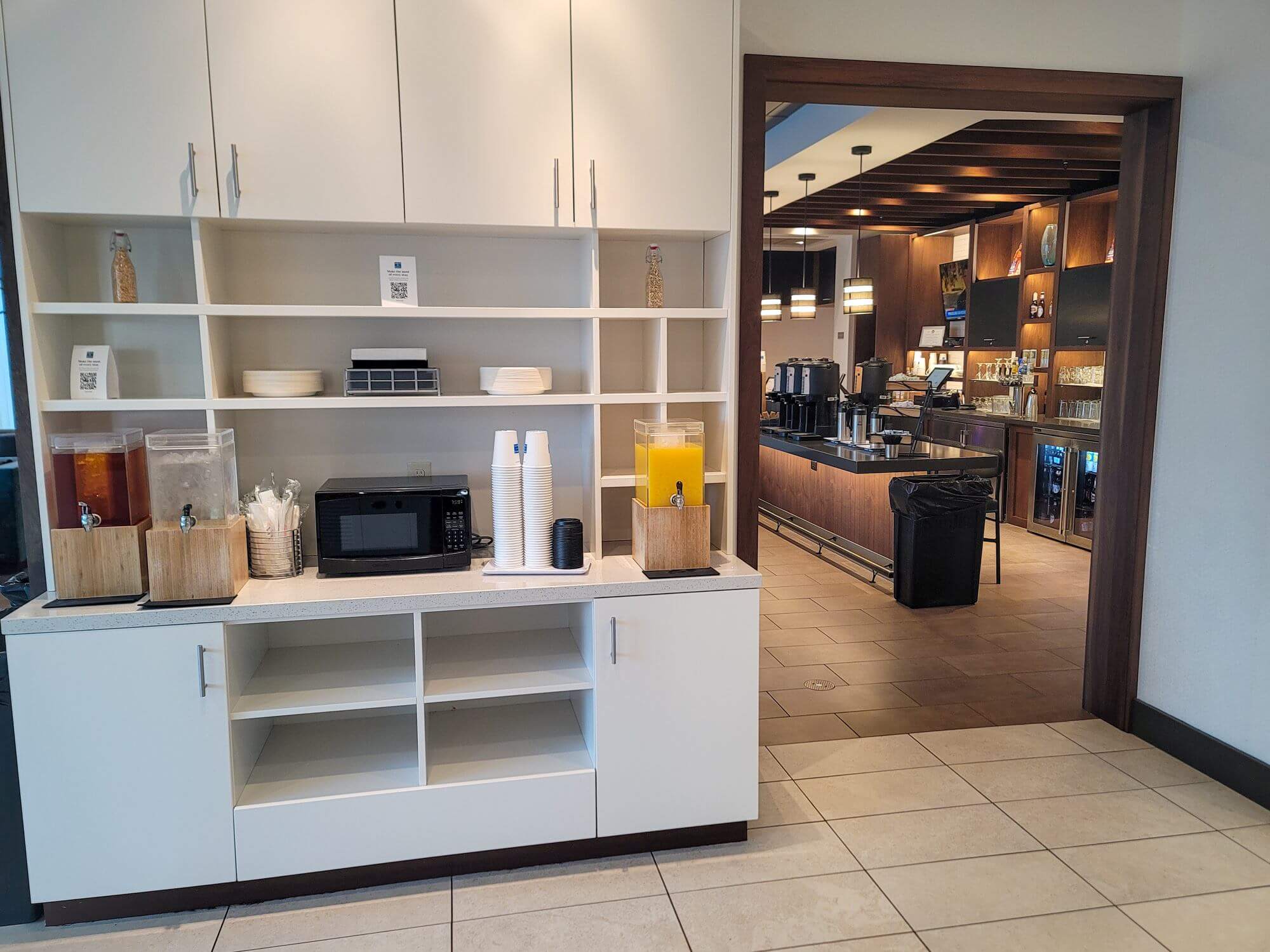 The lobby bar is located next to the front desk. Can’t really miss it either. During breakfast hours, you can find the coffee sitting on the counter of the bar.