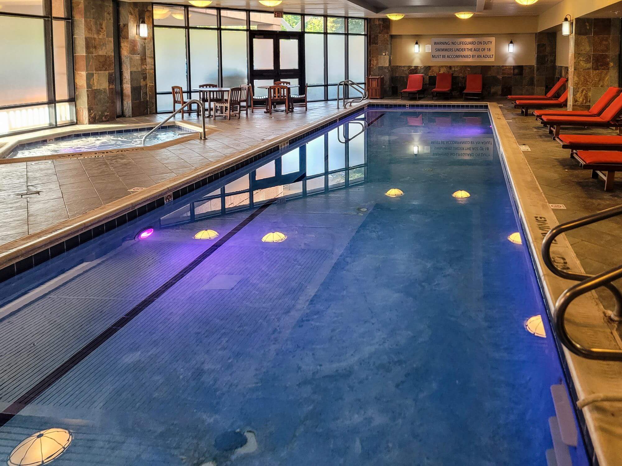 The indoor pool area can be accessed through the fitness center. For both you need your room key to open it. There are only a few pool loungers in the pool area. Besides the pool, there is also a small hot tub.