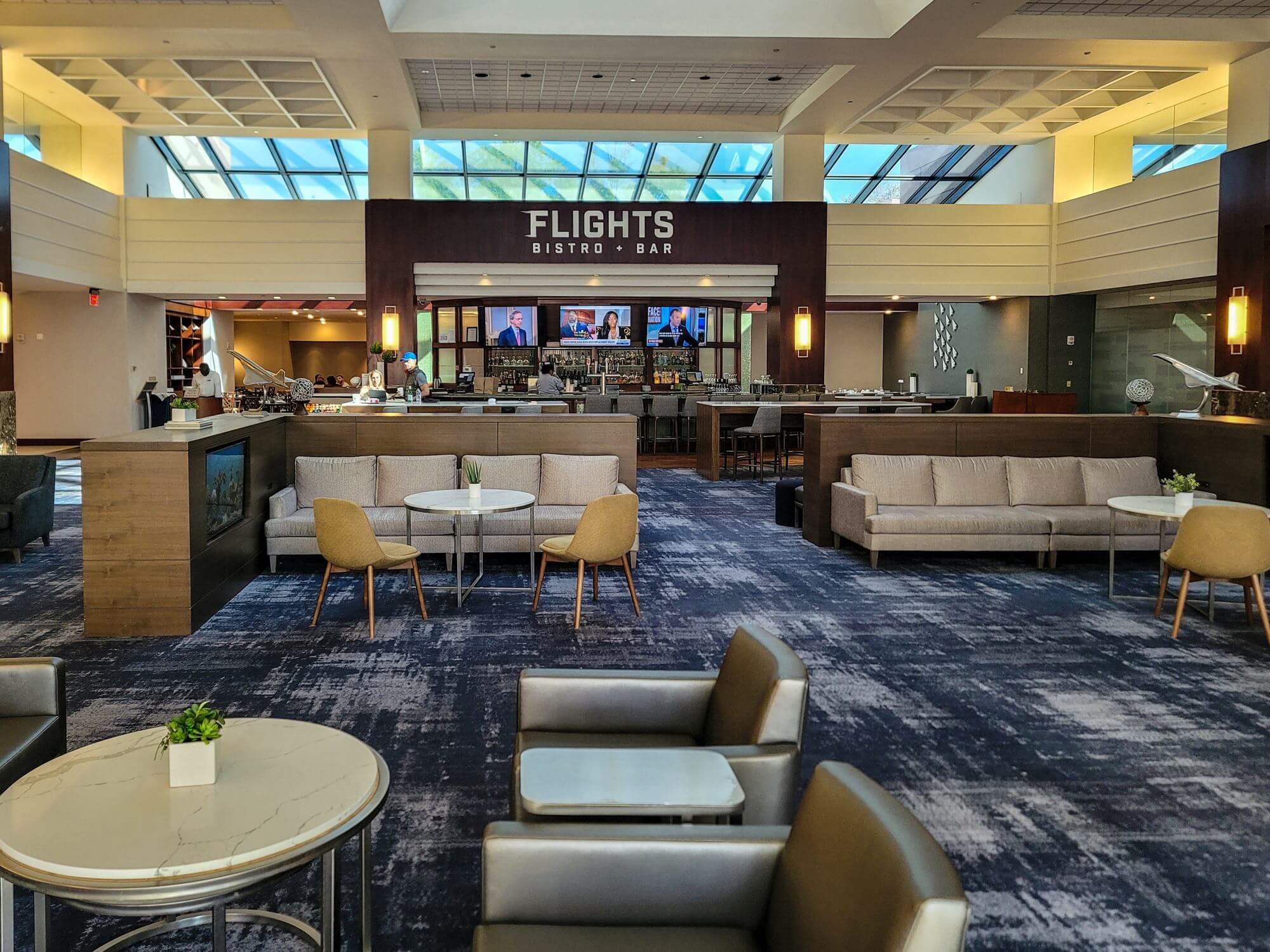 Flights Bistro + Bar is the only restaurant on-site at the Hyatt Regency Dulles. Besides that, there is a small convenient store next to the front desk, which offers some small snacks for to go. Drinks like soda and water bottles to go are available at the bar.