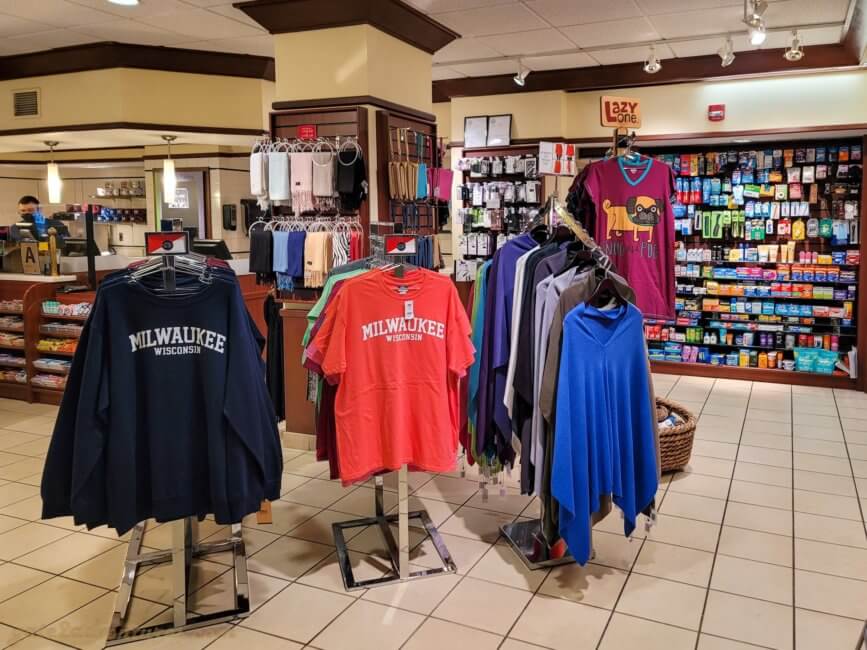 Next to the main entrance of the Hyatt Regency Milwaukee is Sarah’s Pantry, the hotel’s gift shop. They sell everything from snacks, beverages and souvenirs to clothing and electronics. They also have a small “pharmacy” section for over-the-counter medicine and hygiene articles. It is open from 7 a.m. until 10 p.m. daily.