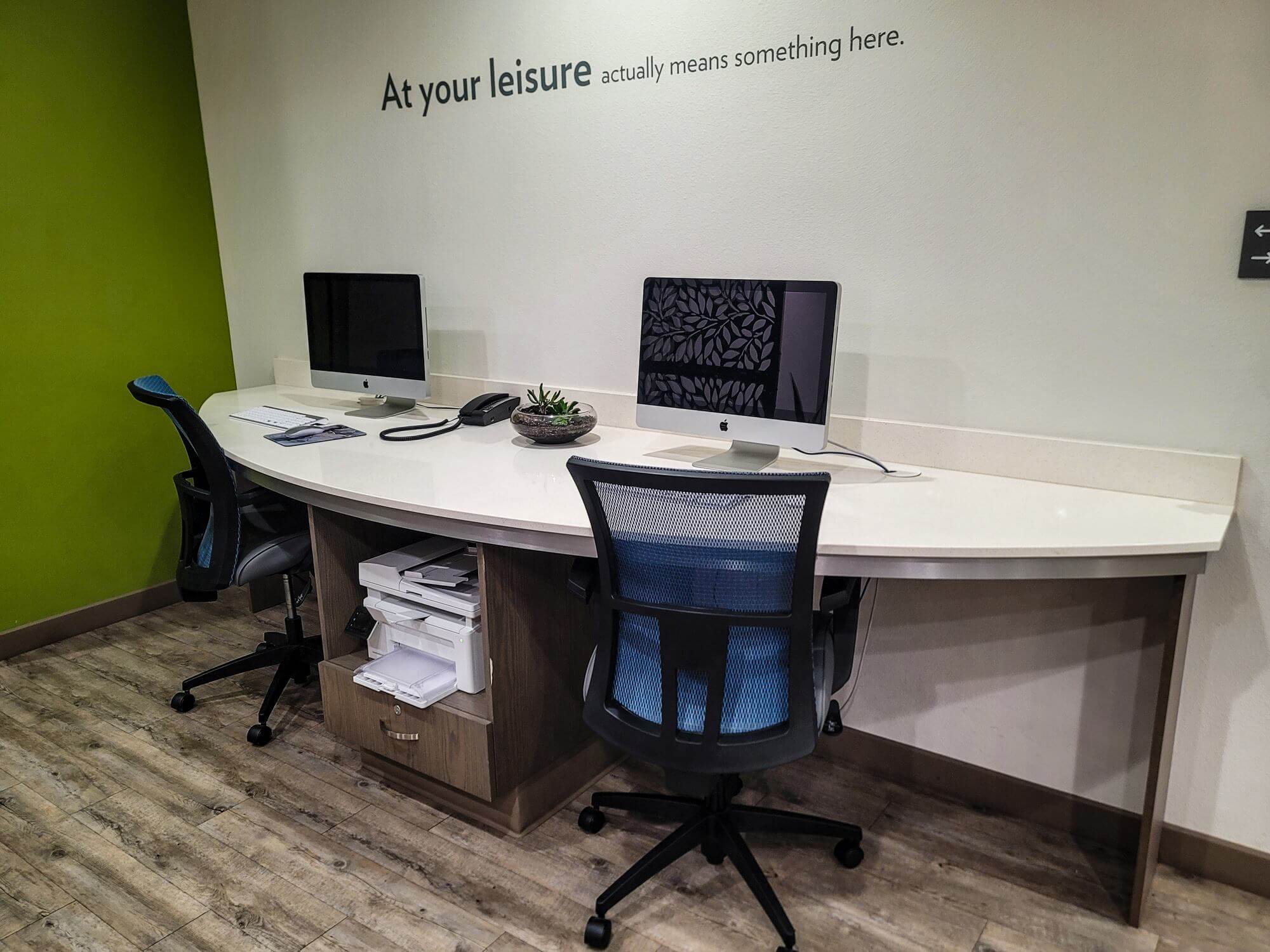 The business center is located next to the restaurant space. It comes with two workstations and a printer. Simple but sleek.