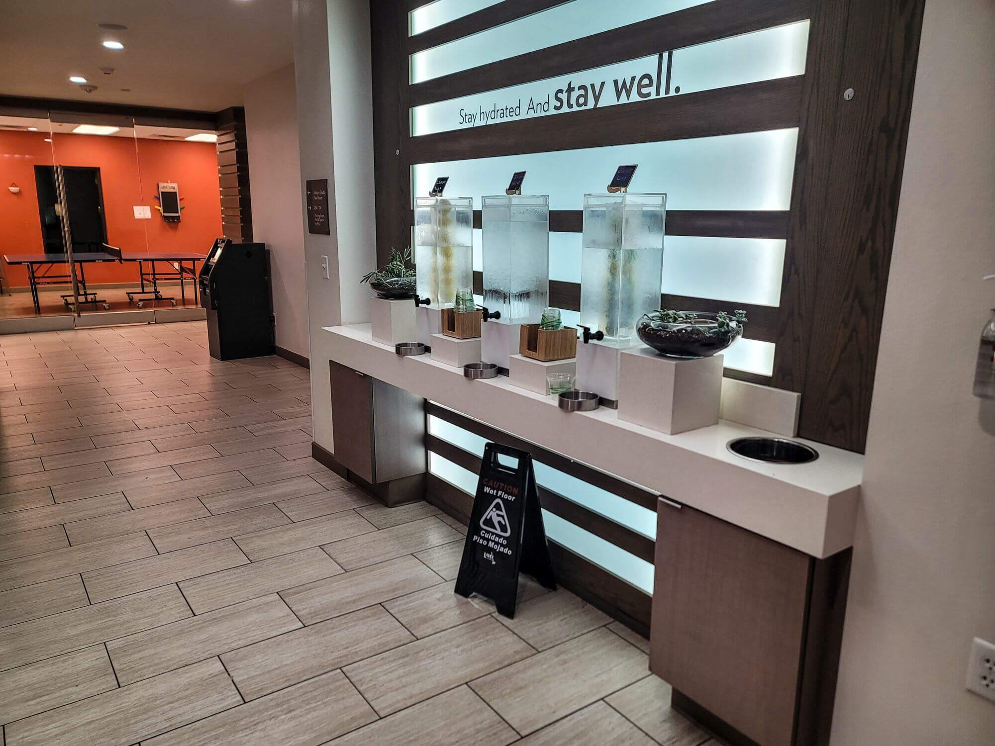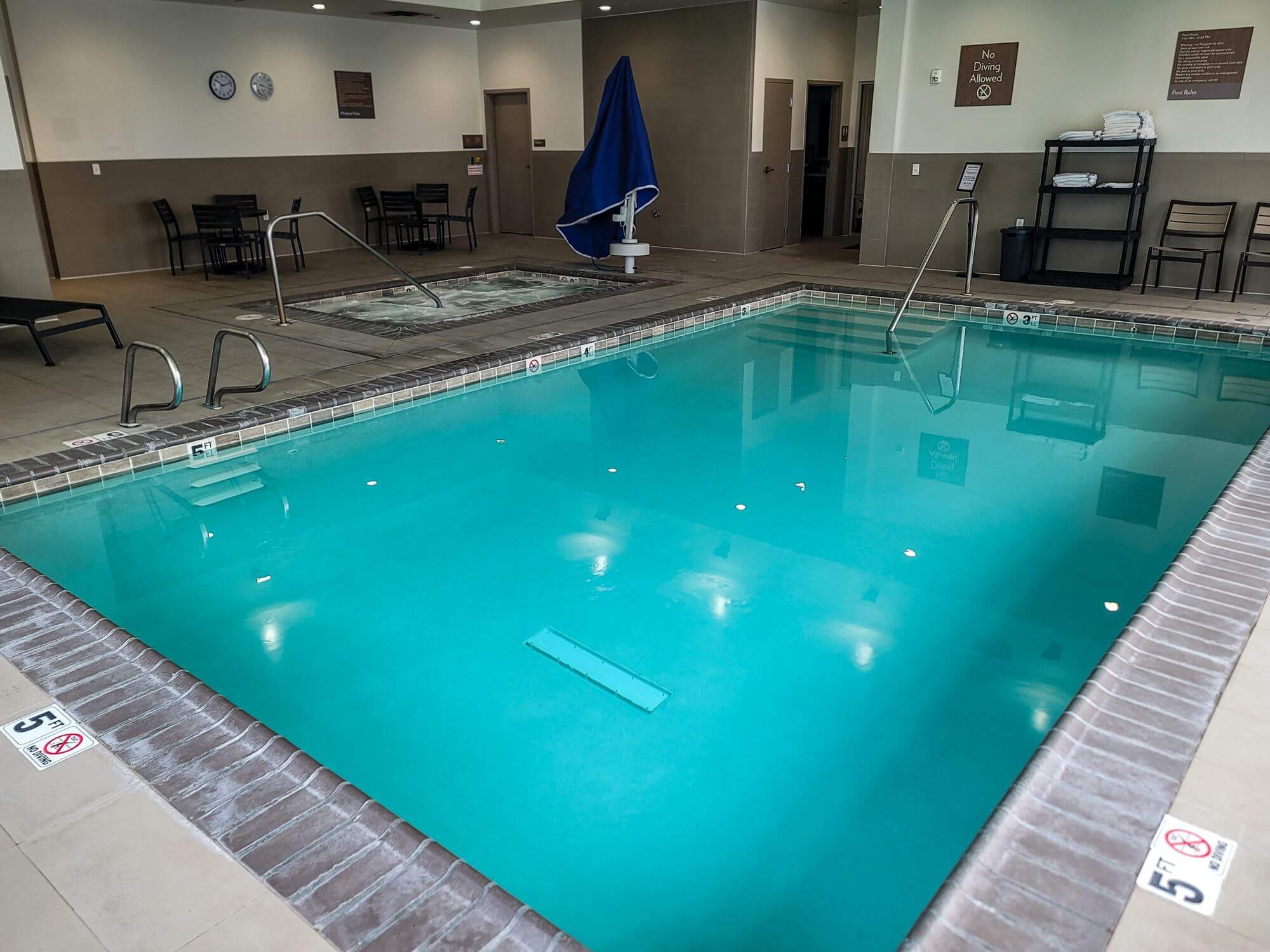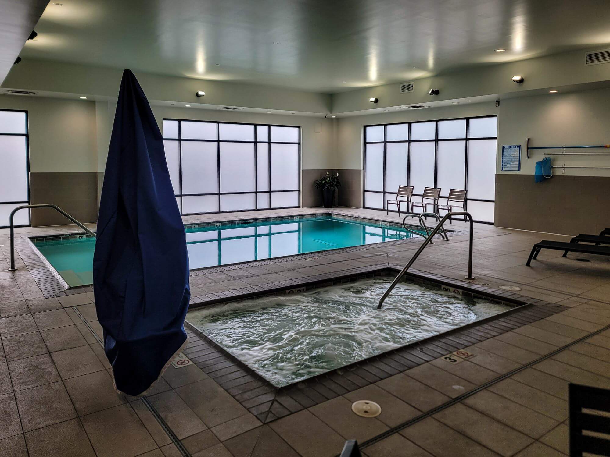 The Even Hotel Eugene features an indoor pool. The pool is located on the ground floor next to the elevators. You can’t miss it. You need your room key to enter and inside you find, besides the pool, also a whirlpool. I got there early in the morning after the official opening hours but the lights were still off. I also didn’t find a switch to turn them on myself.
