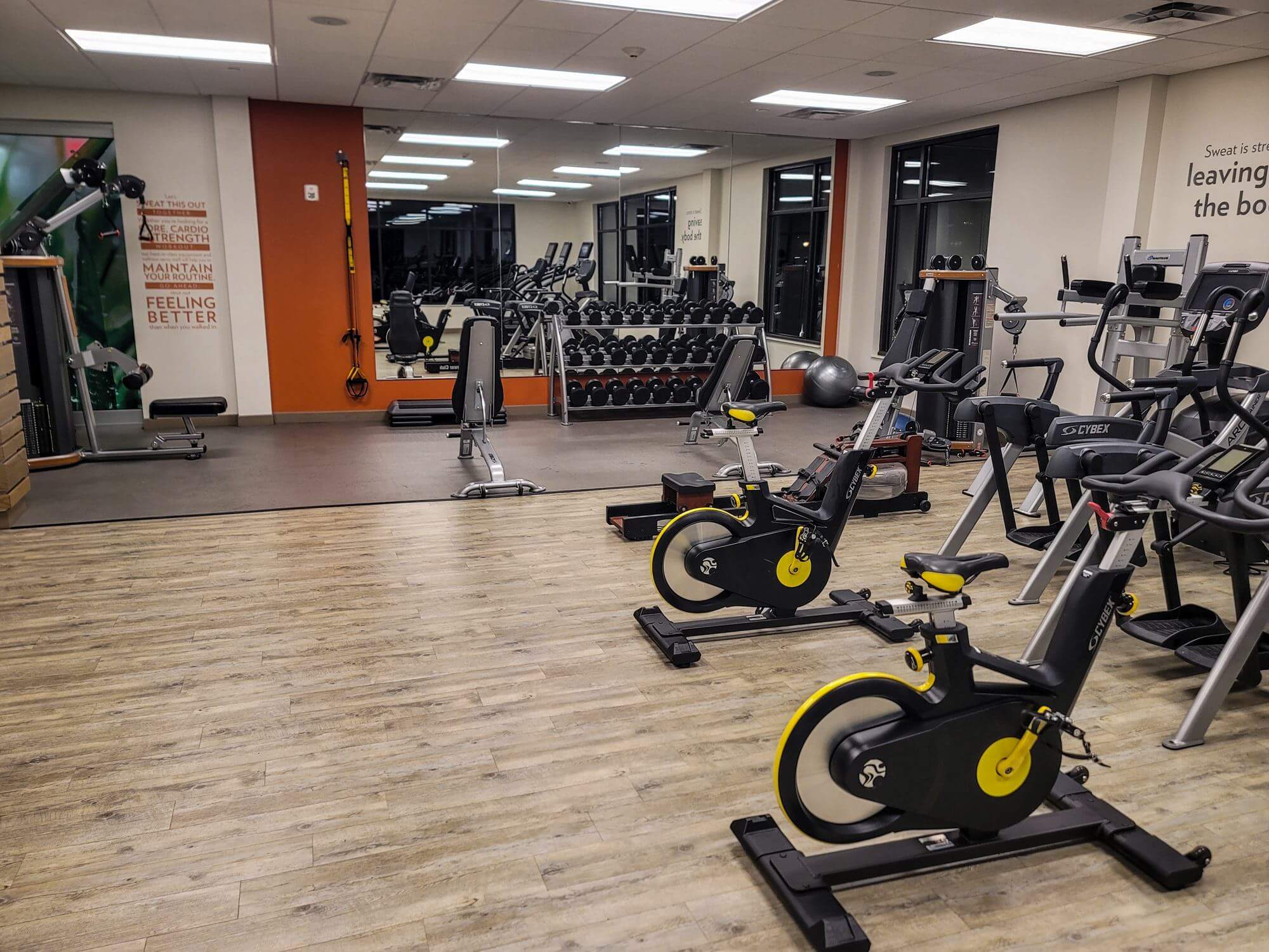 The fitness center is located on the second floor, next to the stairwell going down. Inside the fitness center, for which you need your room key to enter, you find lots of workout equipment.