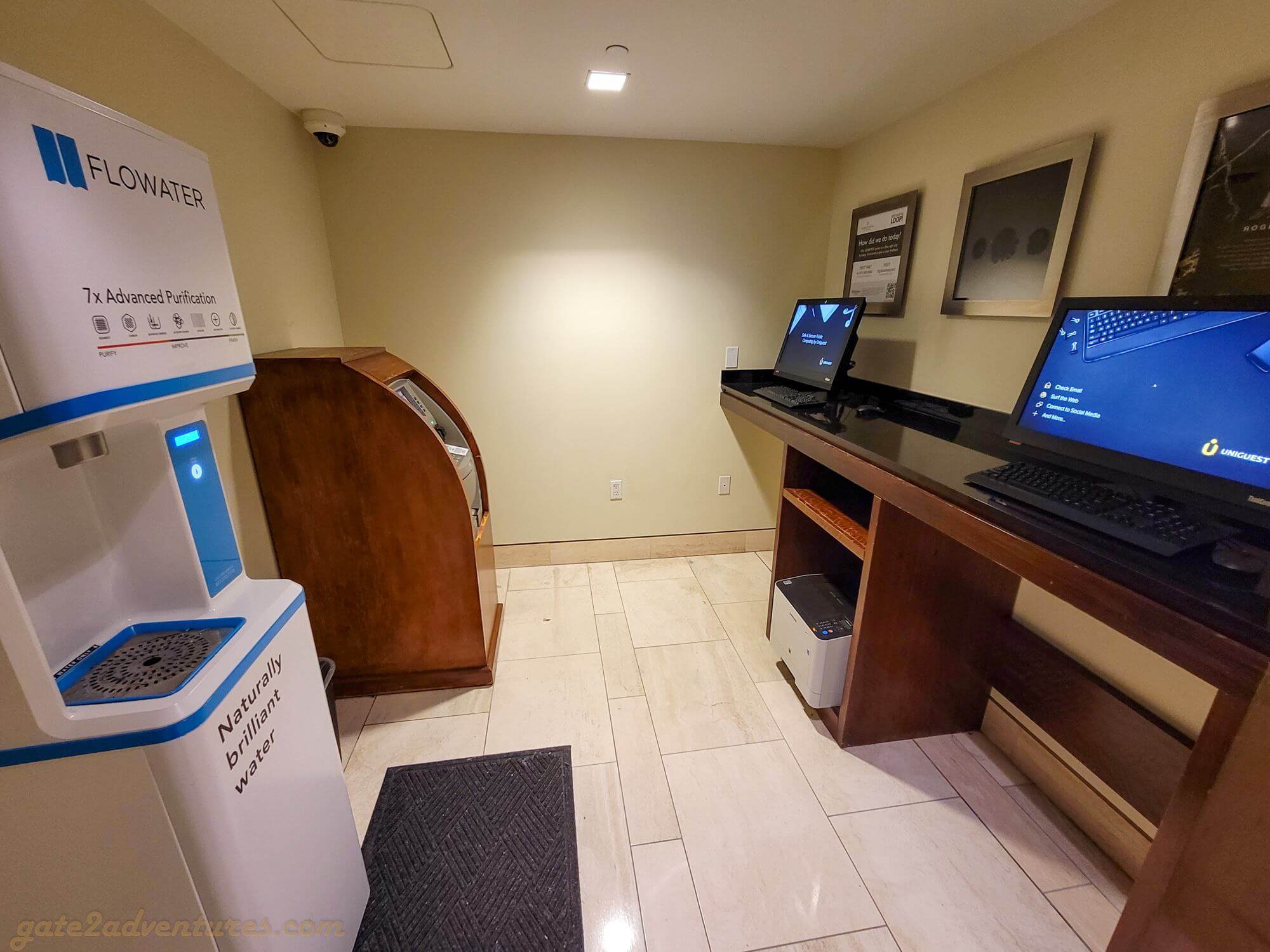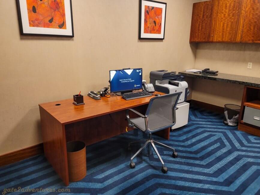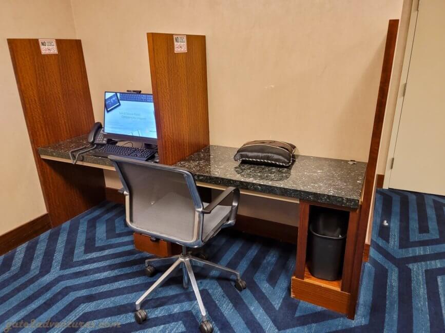 There is another set of PC workstations in the lobby next to the restrooms where you can also print your boarding passes for free or surf the web for the same outrageous prices. However, the PCs in the small business center in the lobby have no chairs. In the same area is an ATM and a water purifier and dispenser. The lobby business center has no door and if you are looking for a quiet place it’s better to use the business center on the third floor or better even your room.