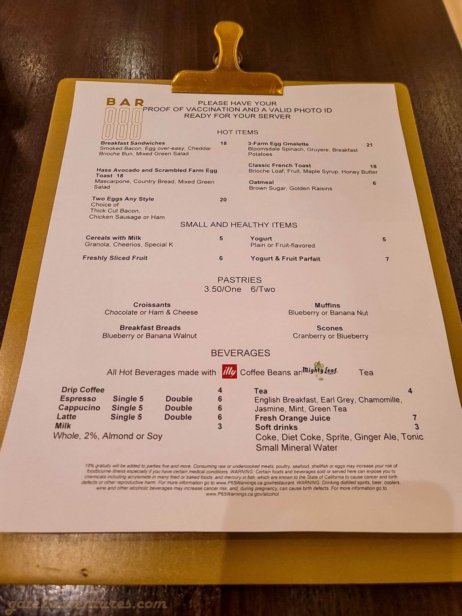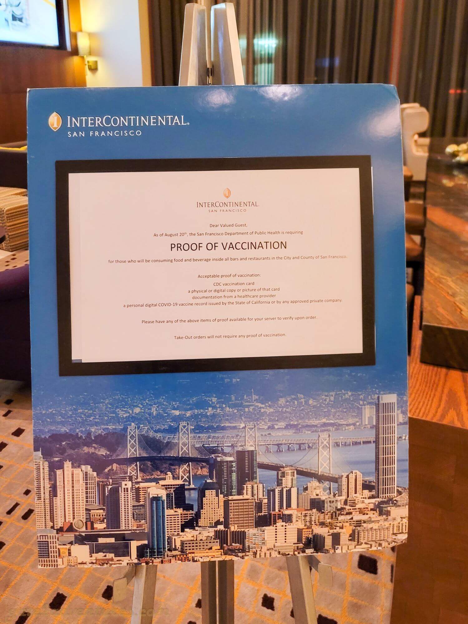 But before you even get to sit down and order food, you must show proof of vaccination. I knew about that, but I didn’t know that you also had to bring your ID with you. I used the digital proof of vaccination through Common Health stored on my phone. If you are not vaccinated, you can’t dine in and must take your order to go and eat in your room. This rule is stupid, as it is only for San Francisco County, a few miles south, at the airport you don’t have to show proof of vaccination.
