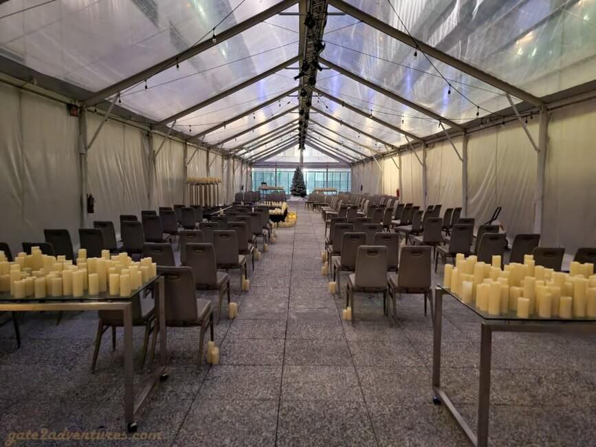 There are three terraces at InterContinental San Francisco. Two of them have temporary tents set up. One was used for dining while the other one was used for a concert. Only one of the terraces was a regular terrace with lots of outdoor seating. It is located on the sixth floor and comes with a fireplace to keep you warm on cooler nights. This terrace also has a connecting door to the Club InterContinental Lounge as well located on the sixth floor. The views are not very spectacular from this area, as it is surrounded by other high-rises. Tall glass walls protect you from falling as well as from the wind blowing through the spaces between the high-rises.