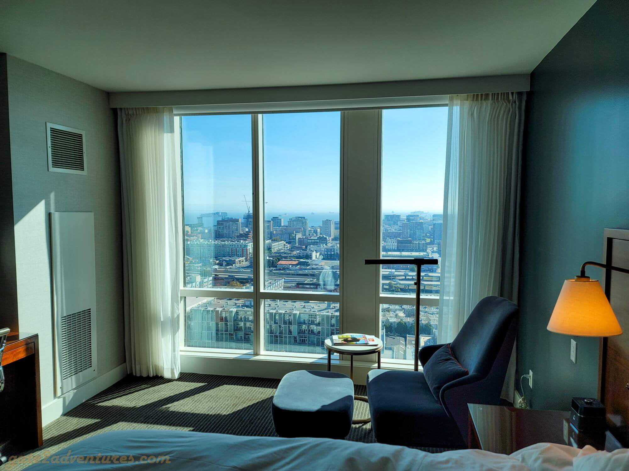 The large windows give you a lot of light in the room throughout the day and also magnificent views. My room was facing southwest and had good views of the bay and you can see Oracle Park, San Francisco’s baseball stadium and the home of the San Francisco Giants. This is a great vantage point if they have fireworks at the stadium after a game.