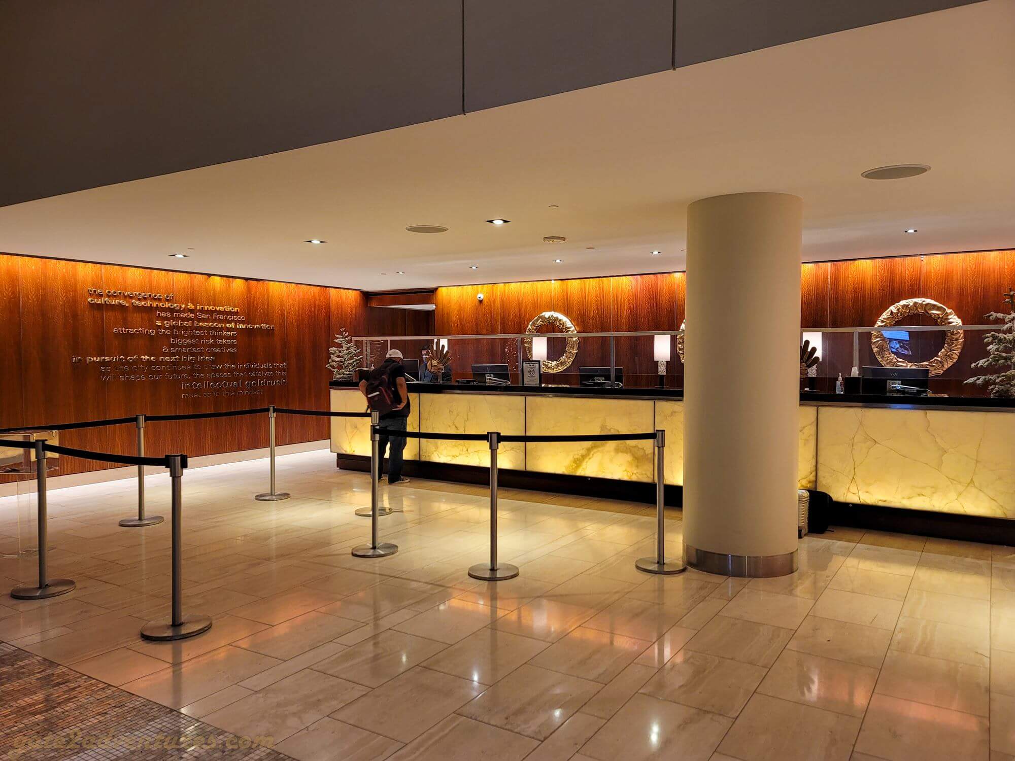 The elevators are just down the hallway from the front desk. You need your room key to activate the elevator to get to any of the floors which only have rooms. Some of the floors also have public spaces like the gym, pool, terraces, and meeting rooms. For those floors, you don’t need a room key to activate the elevator. My room was on the 27th floor and it is a relatively quick and smooth ride to get there. The elevator lobby has a window facing northwest towards Downtown San Francisco. My room was just down the hallway to the right. The room numbering is consecutive rather than having even numbers on one side of the hallway and odd numbers on the other.