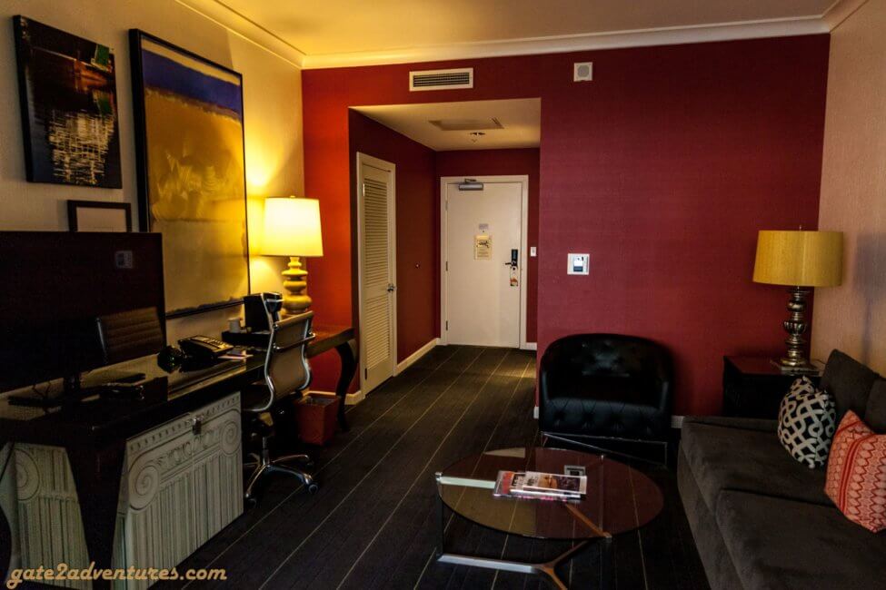 Already by walking in, I was impressed by the room. It’s a deep room and the entrance area has red walls while the rest of the room has white walls. The room is very spacious and the layout is perfect for a great stay in Seattle.