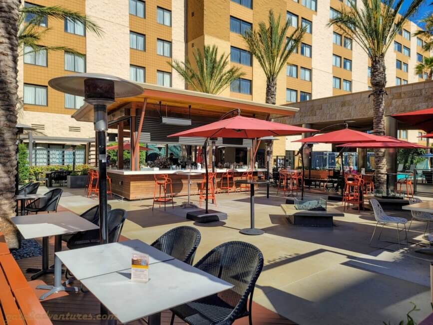 Is an outdoor dining spot next to the main entrance and between the two hotel towers. You need to wait to be seated or choose a spot around the bar. Besides serving great drinks, their menu also offers a great selection of food. Service seems to be a problem because they are understaffed at the moment like so many other places all over the country.