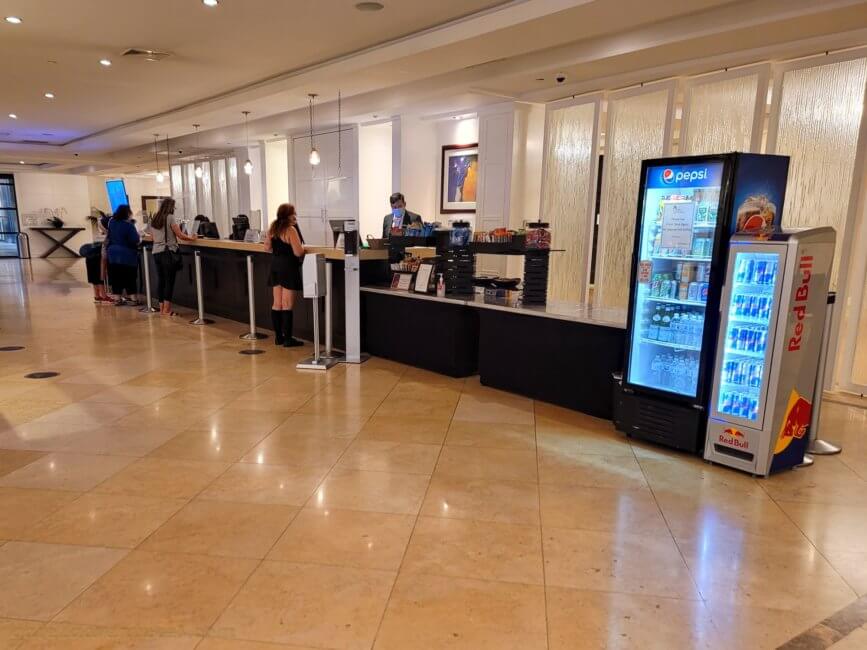 Next to the front desk is a small snack and beverage area where you can pick some light snacks like granola bars and different kinds of beverages like Pepsi products, water and Red Bull. The price will be charged to your room. Elite members who would have Concierge Lounge Access (Marriott Bonvoy Platinum, Titanium & Ambassador Elite Members) can choose whatever they want and it is all complimentary. You can come back as many times as you want during your stay and it is all complimentary for your stay. Just talk to one of the front desk agents and give them your room number.