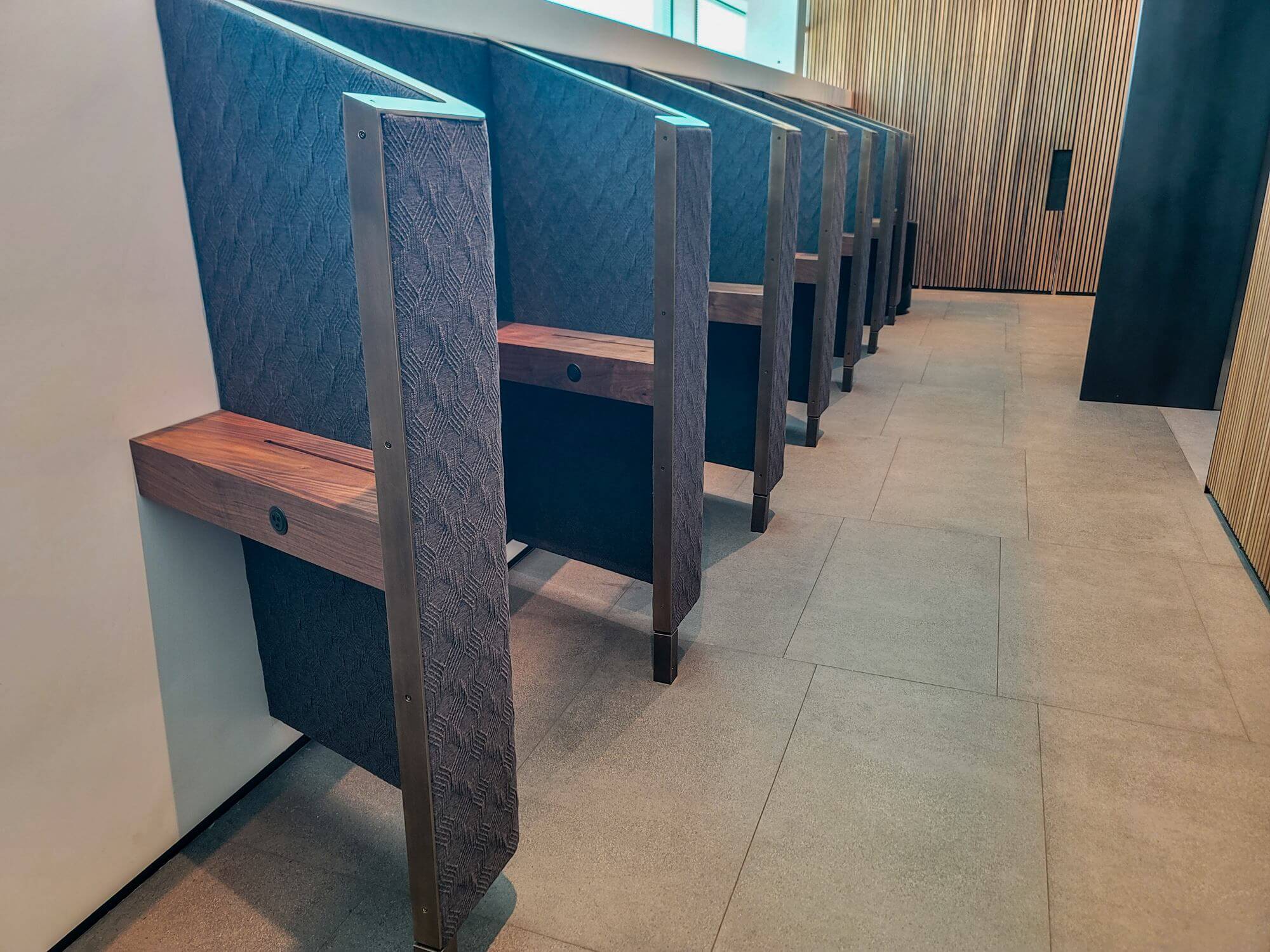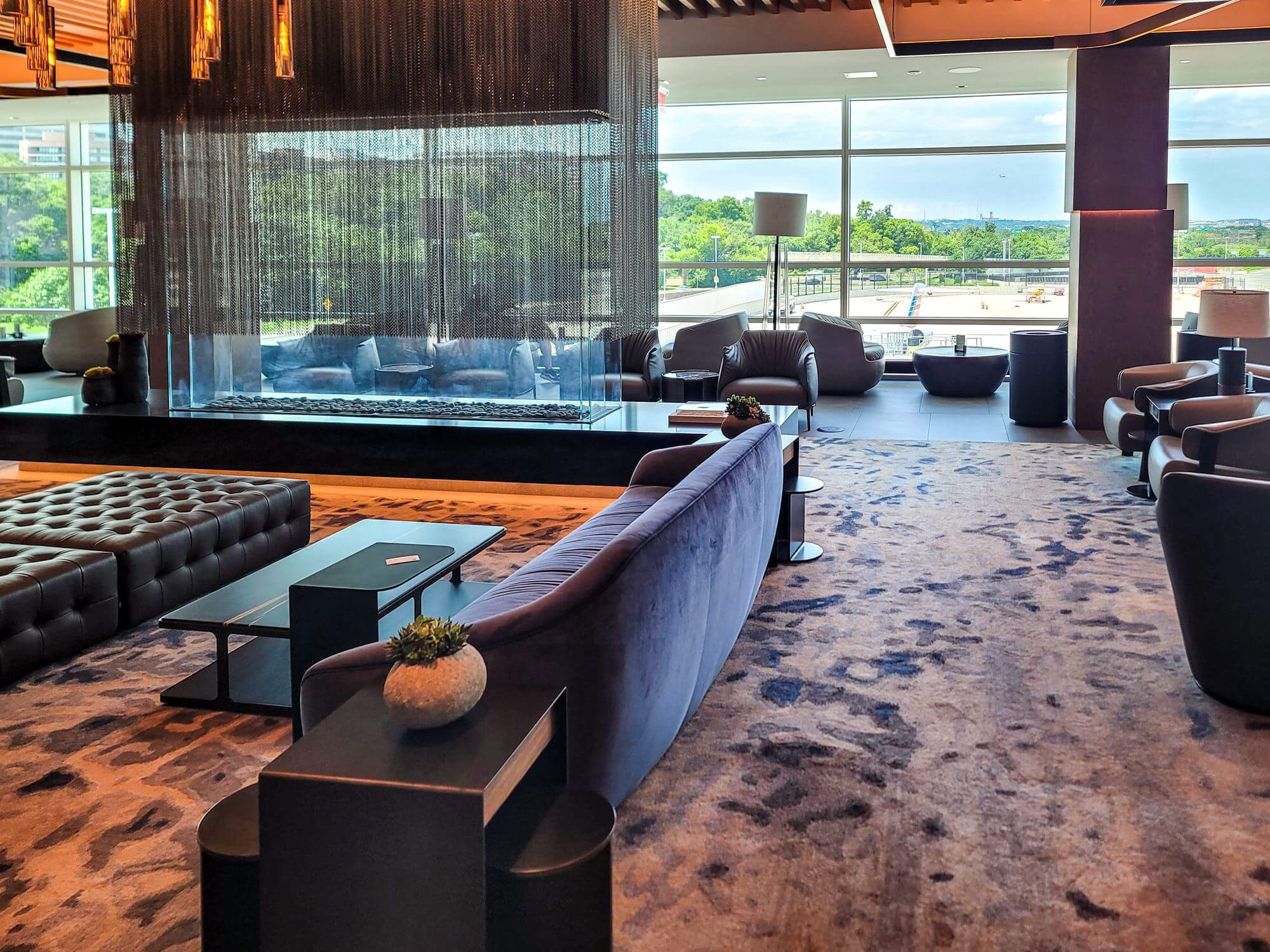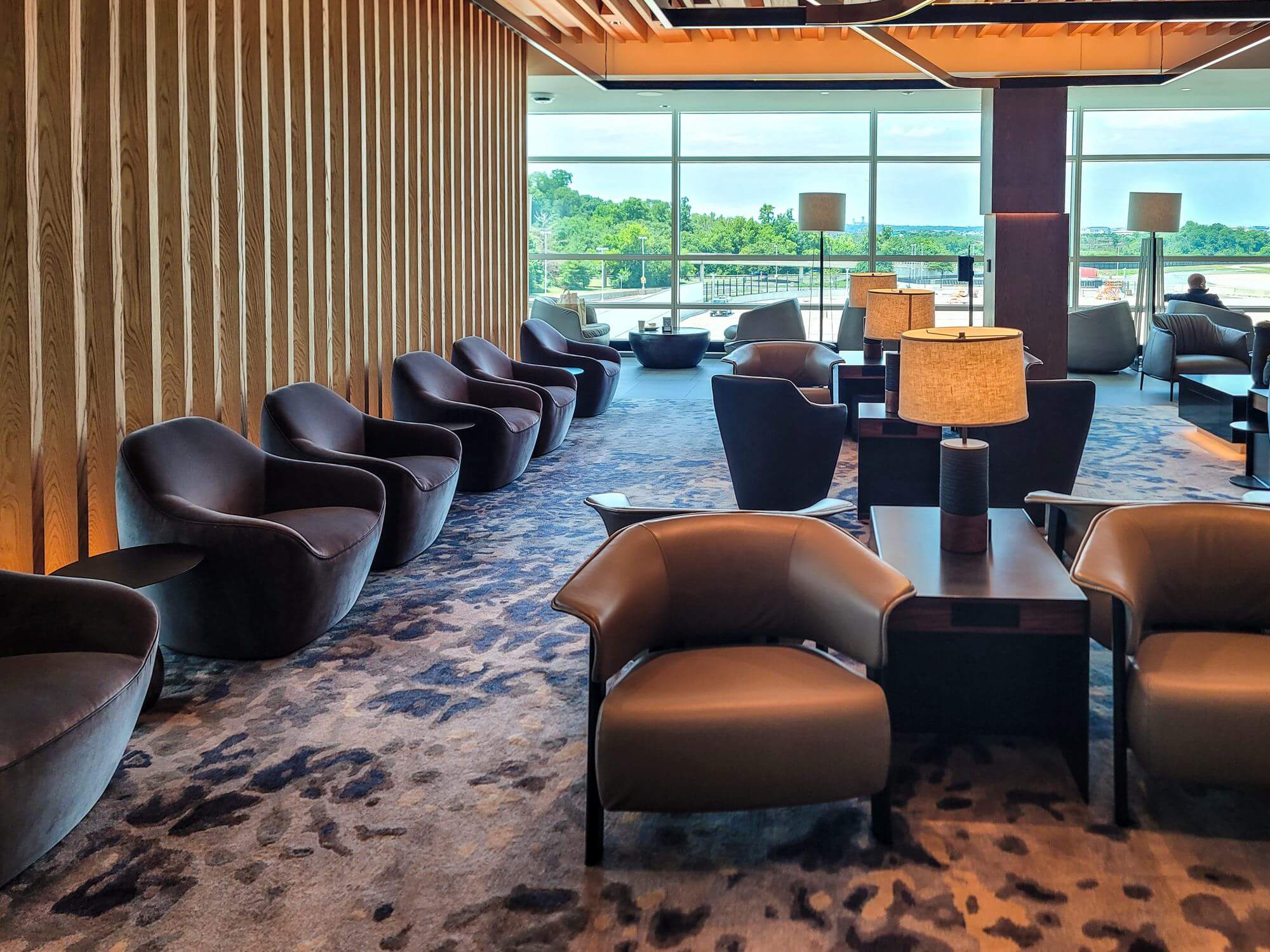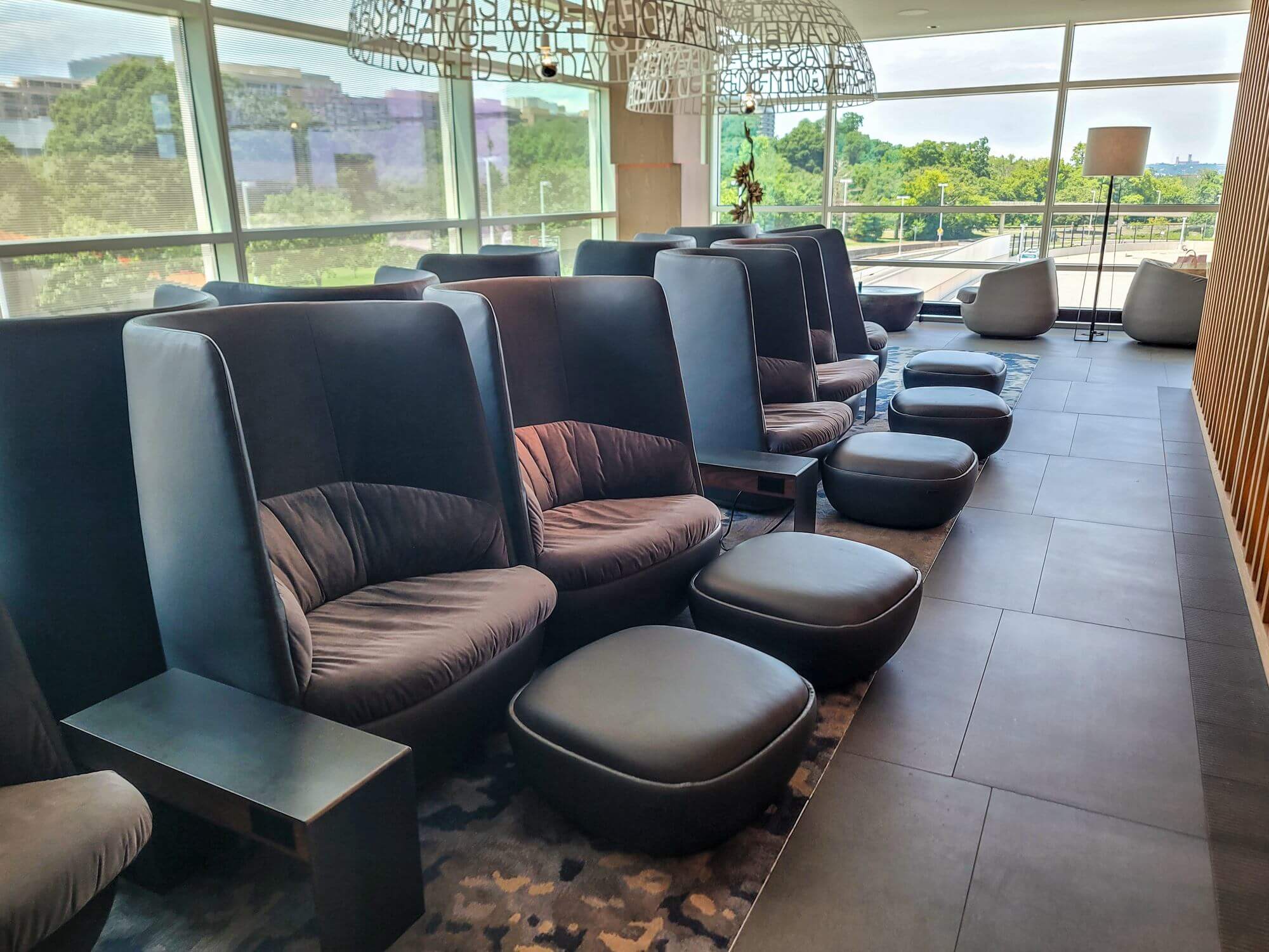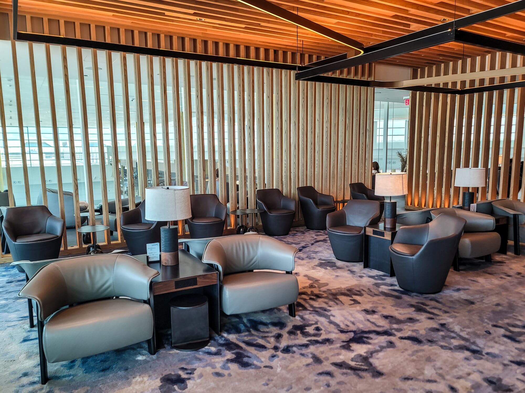 The use of wood accents really made the lounge feel more inviting. Big floor to ceiling windows offer lots of light and great views of the concourse as well as the tarmac.