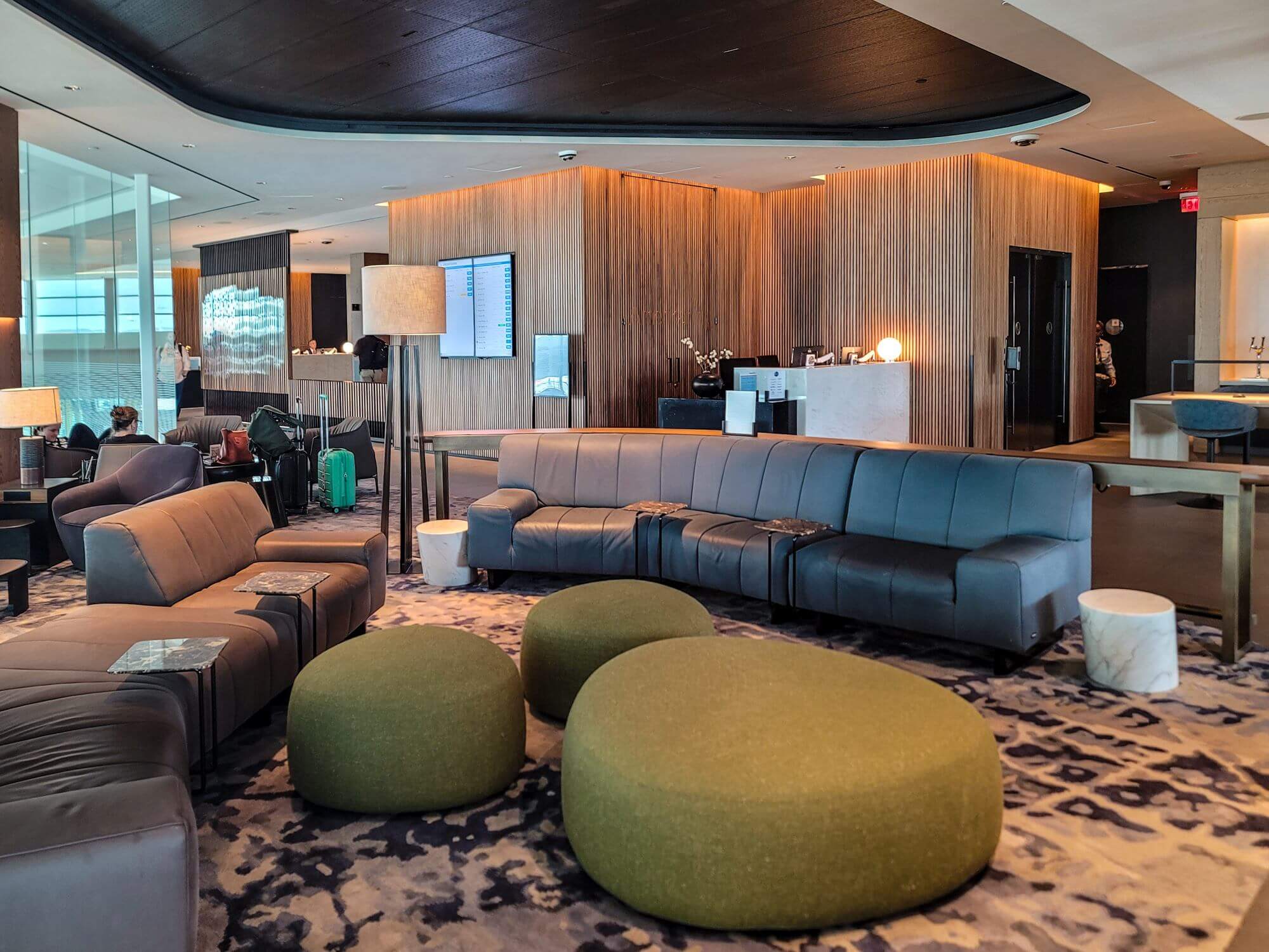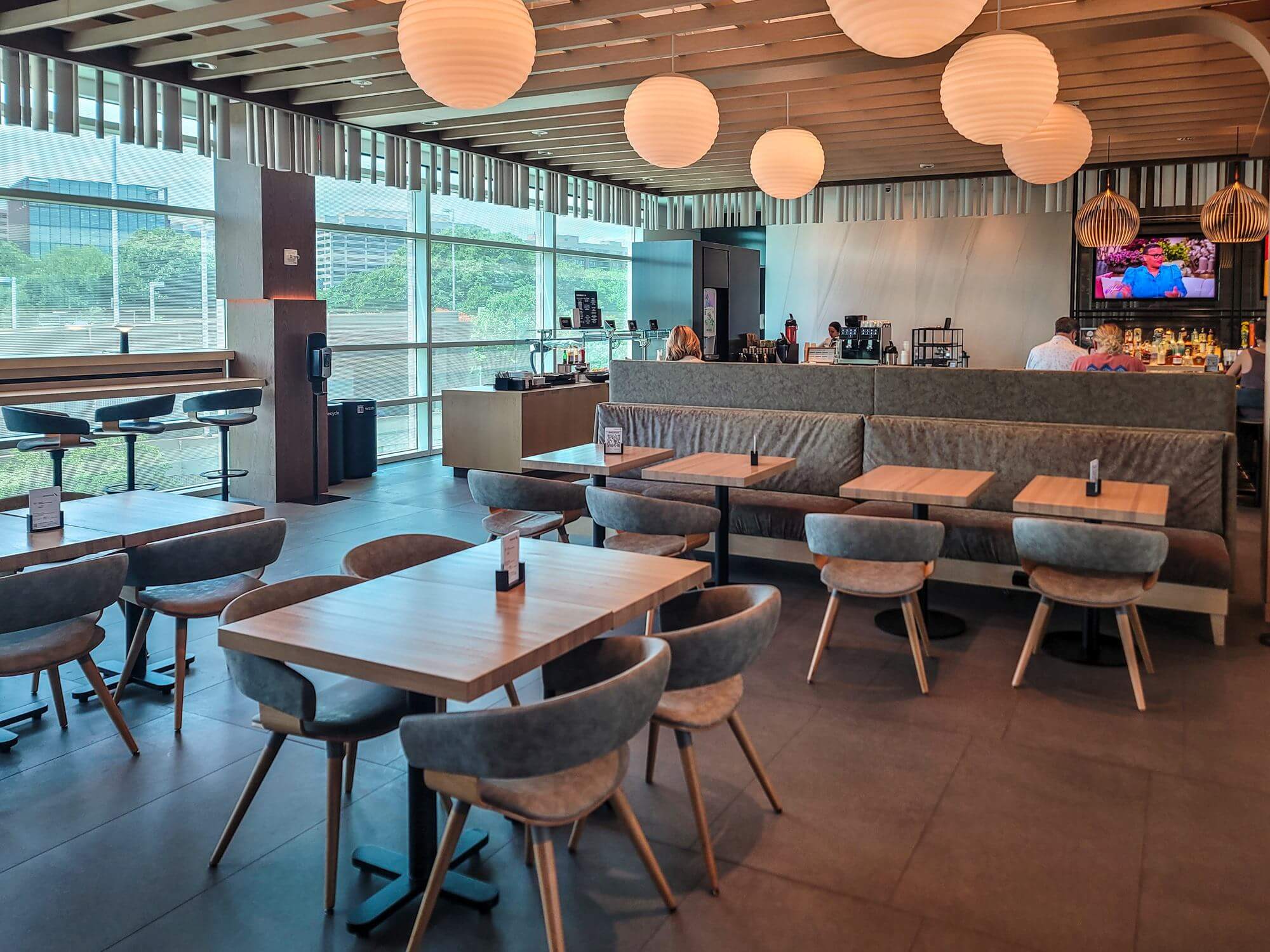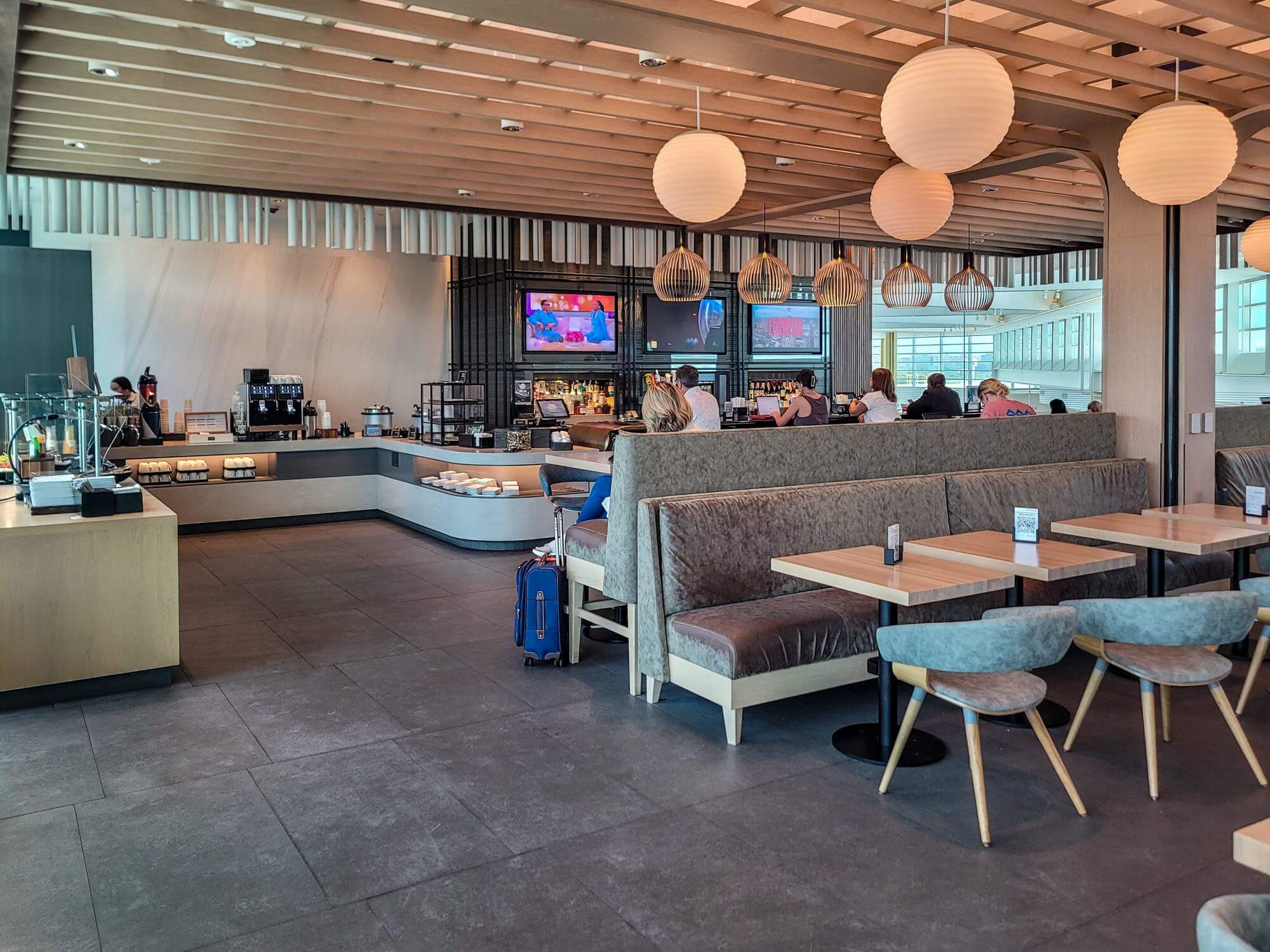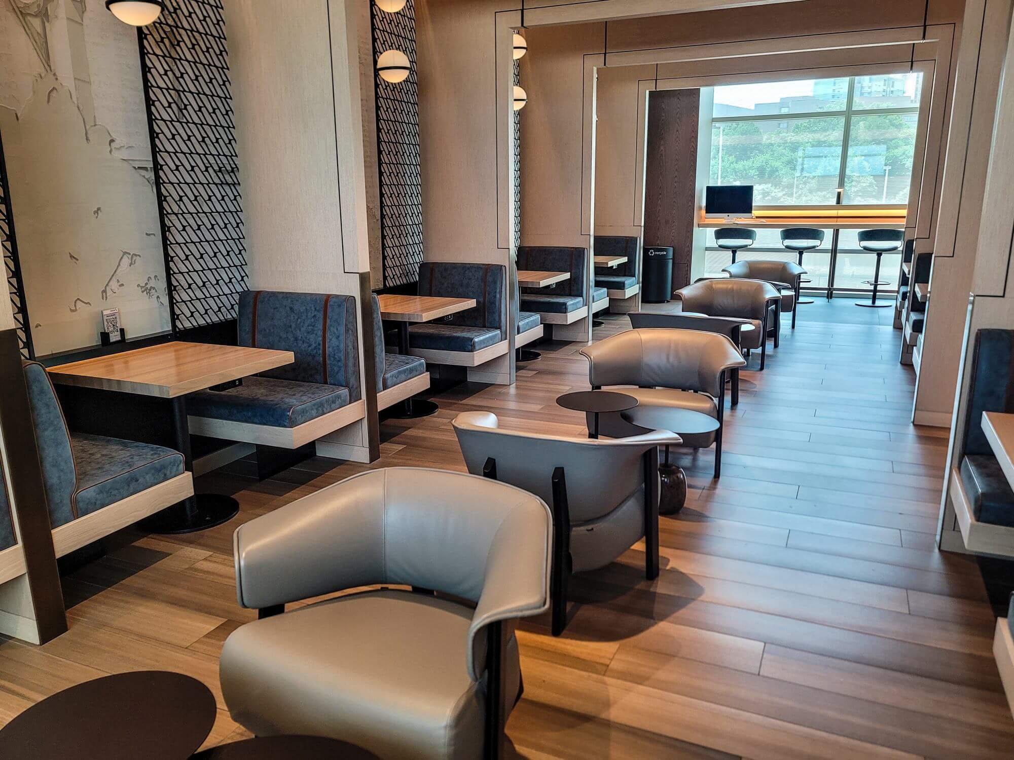 This Admirals Club at Reagan National Airport, was the first Admirals Club that got renovated and opened in late 2022 as American Airlines’ new “reimagined” club lounge. In August 2022, American announced its new iteration of Admiral Clubs under the “reimagined” style which is meant to give you a feel of “coming home” by using plenty open spaces and natural woods.