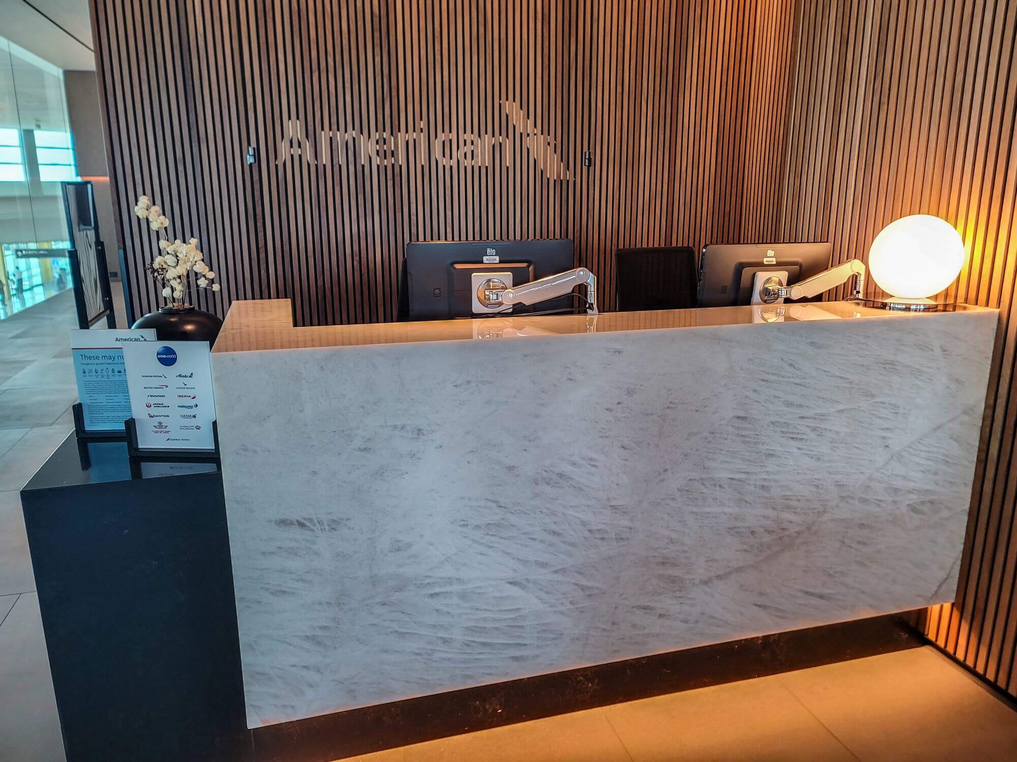 As you get off the elevator or up the stairs, you will pass by the check-in counter. The Admirals Club Concourse E is very spacious and the new reimagined club design really makes a difference. This lounge feels so much more welcome than the other two at DCA.